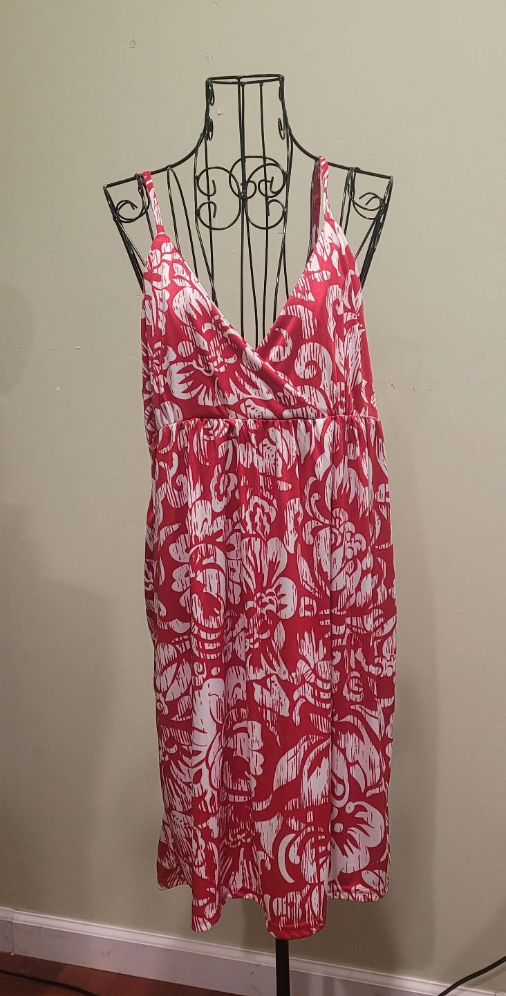 Red and White Floral Sleeveless Sundress