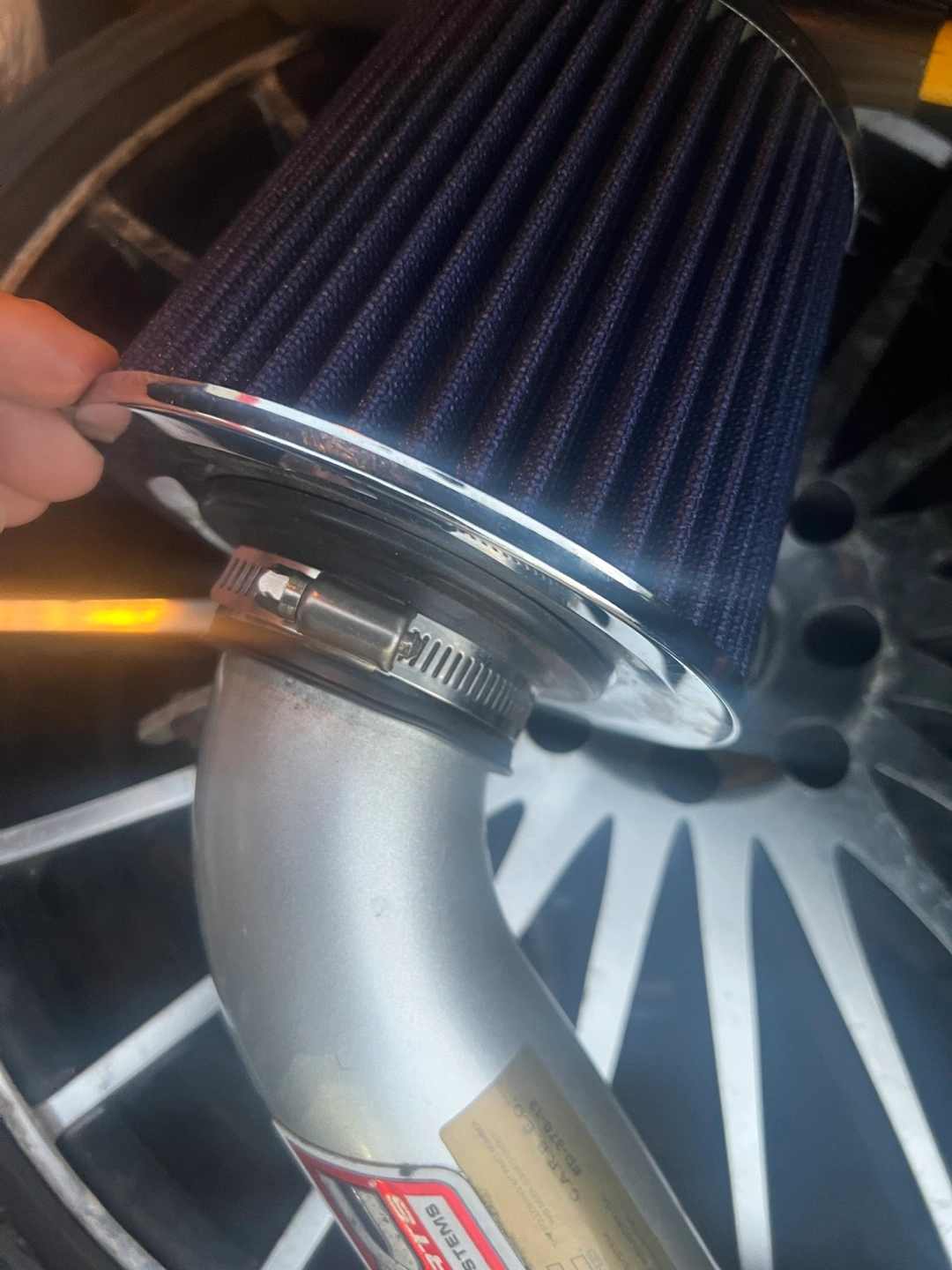 Cold air intake system with filter. XS Sports brand. Includes filter, pipe, clamp.