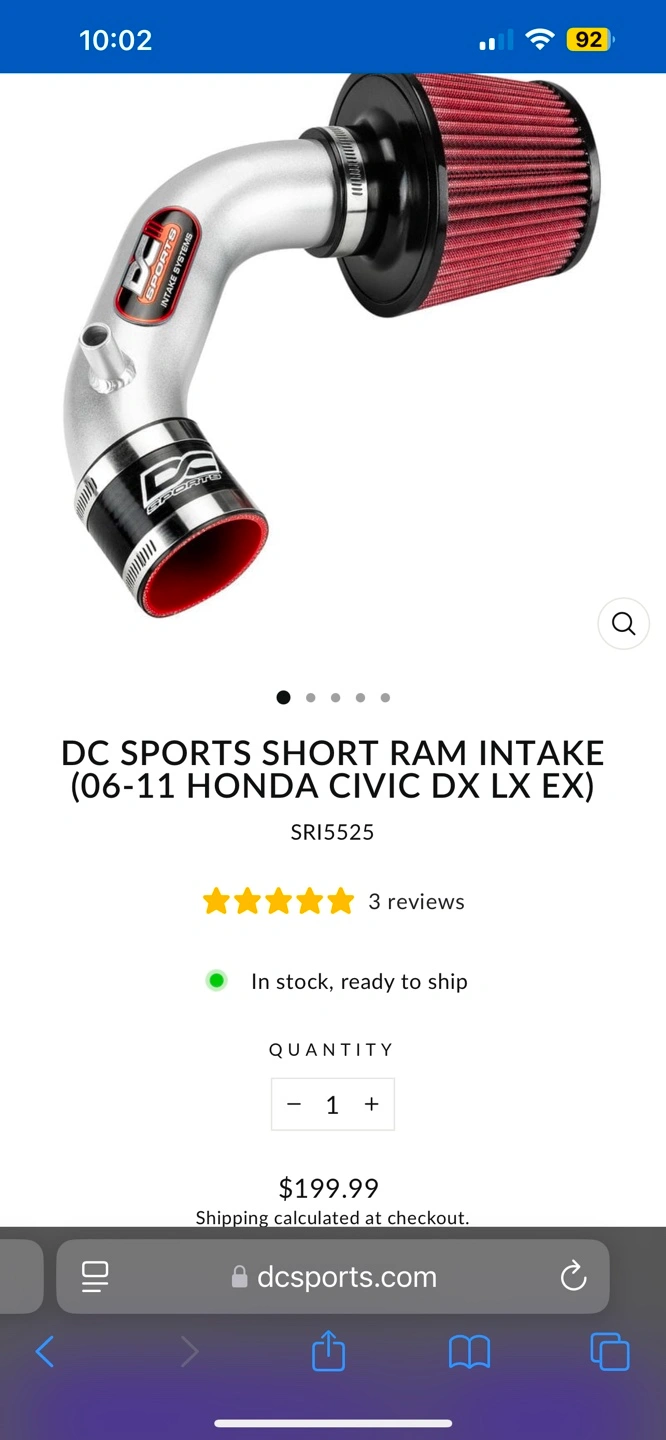 DC hSPORTS SHORT RAM INTAKE (06-11 HONDA CIVIC DX LX EX)