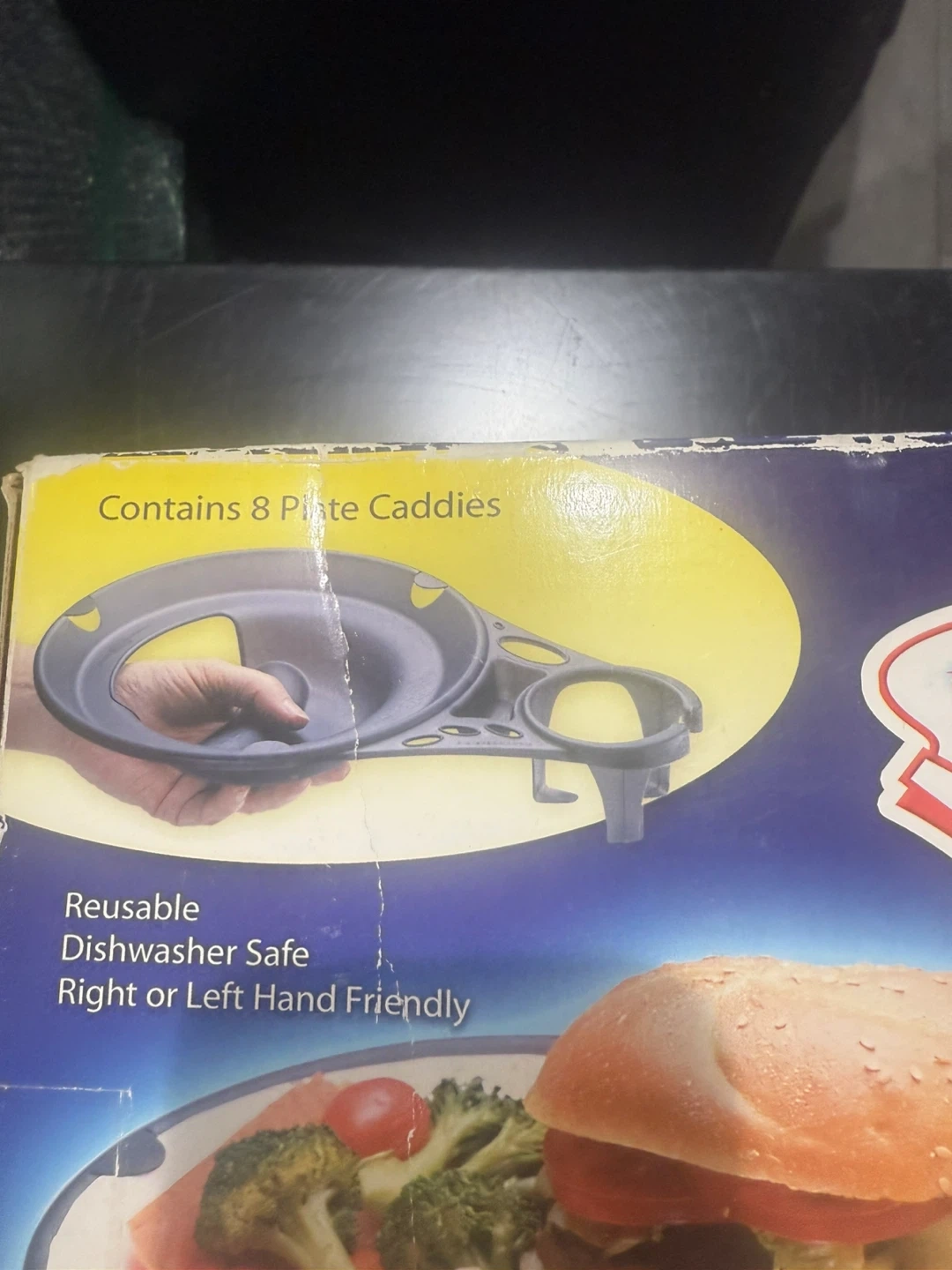 Selling a Plate Caddy 8-pack! It's a plate, beverage, and utensil holder. Great for parties, BBQs, tailgating, picnics, and more! It's reusable and dishwasher safe. Right or left-hand friendly. Comes with color snack picks included!