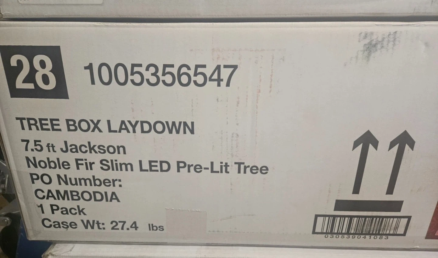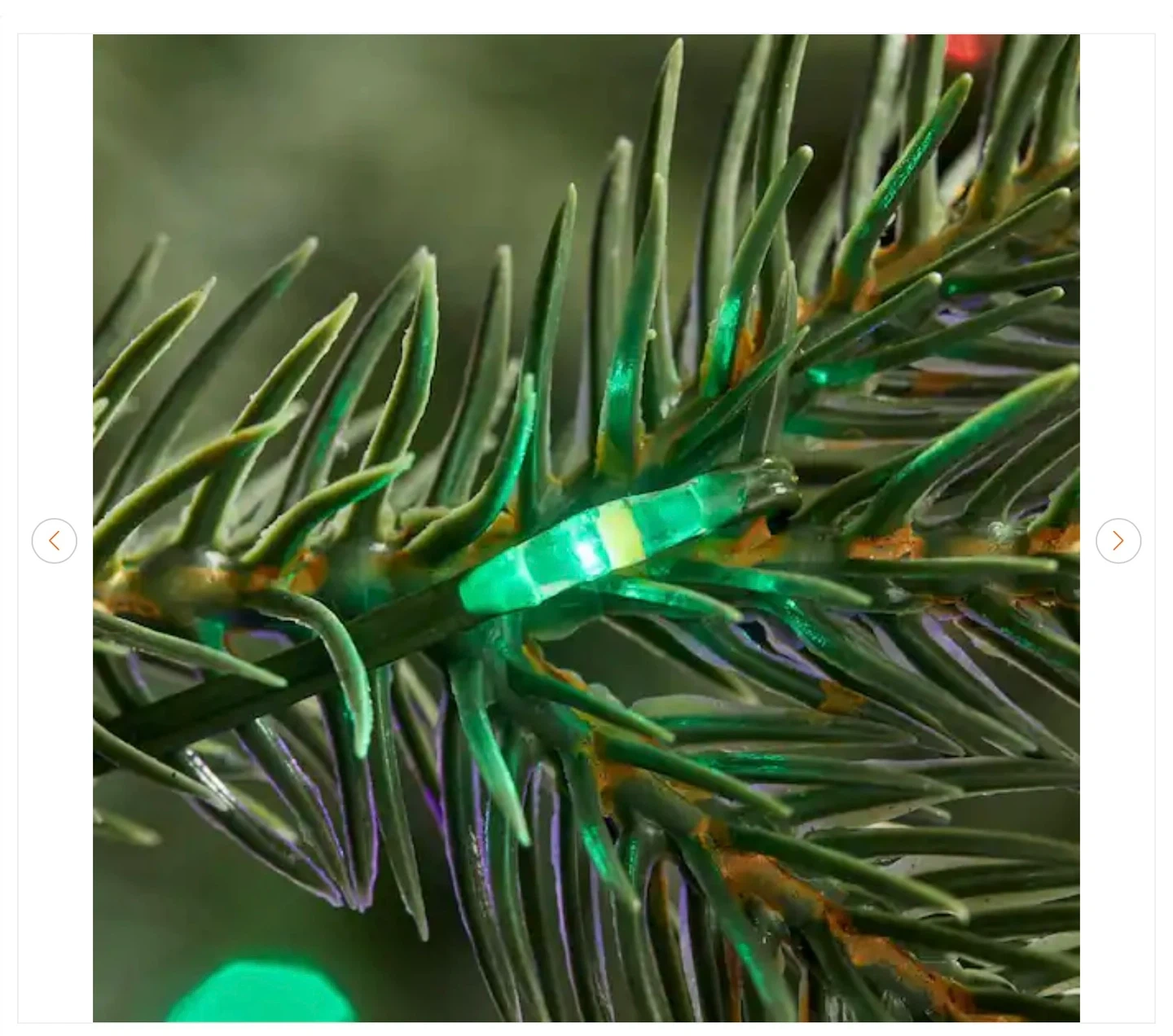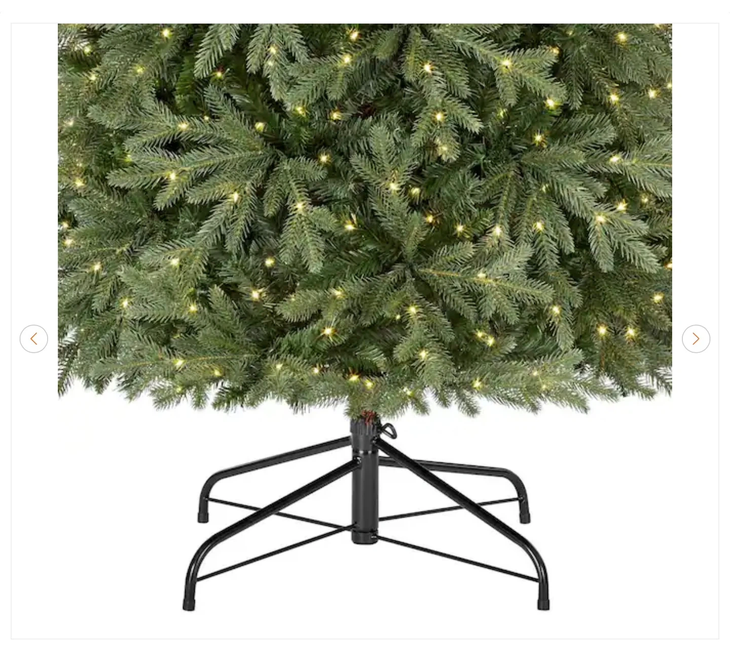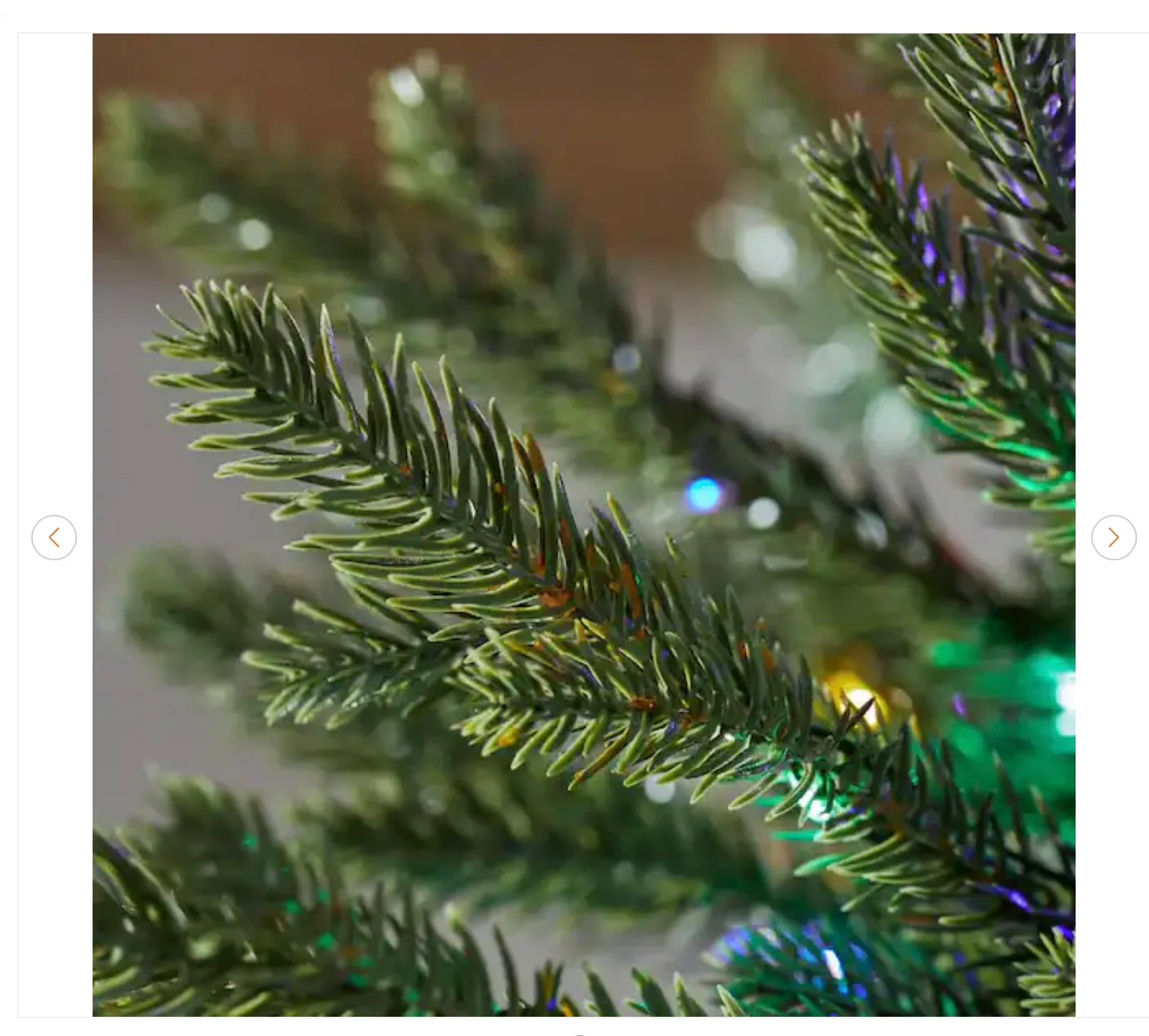 Brand New Home Accents Holiday 7.5 ft. Jackson Noble Fir Slim LED Pre-Lit Artificial Christmas Tree Indoor use only Color changing LED lights 700 LED micro dot lights Light functions: warm white steady, warm white flashing, warm white slow fade, multi color steady, multi color flashing, multi color slow fade, warm white/multi color sequential, warm white/multi color changing, and combination 2393 branch tips 42-inch diameter base 7.5-foot height Realistic branch style Easy ON/OFF foot pedal, remote control, and collapsible metal stand included Remote requires (1) 3V CR2025 battery, included Flame-resistant ETL listed adapter