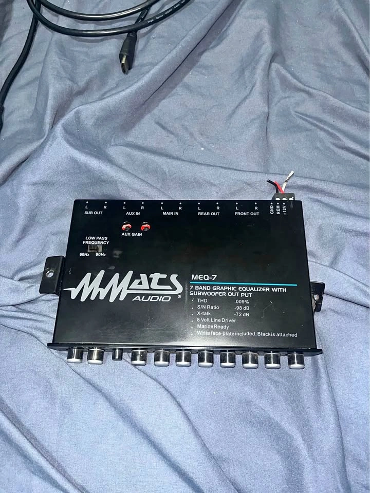 7-band graphic equalizer with sub-woofer output and level control. THD: 0.009% Signal-to-noise: -98dB X-talk: -72dB 8-volt line-driver AUX/Main selector switch 60Hz / 90Hz LP filter switchable