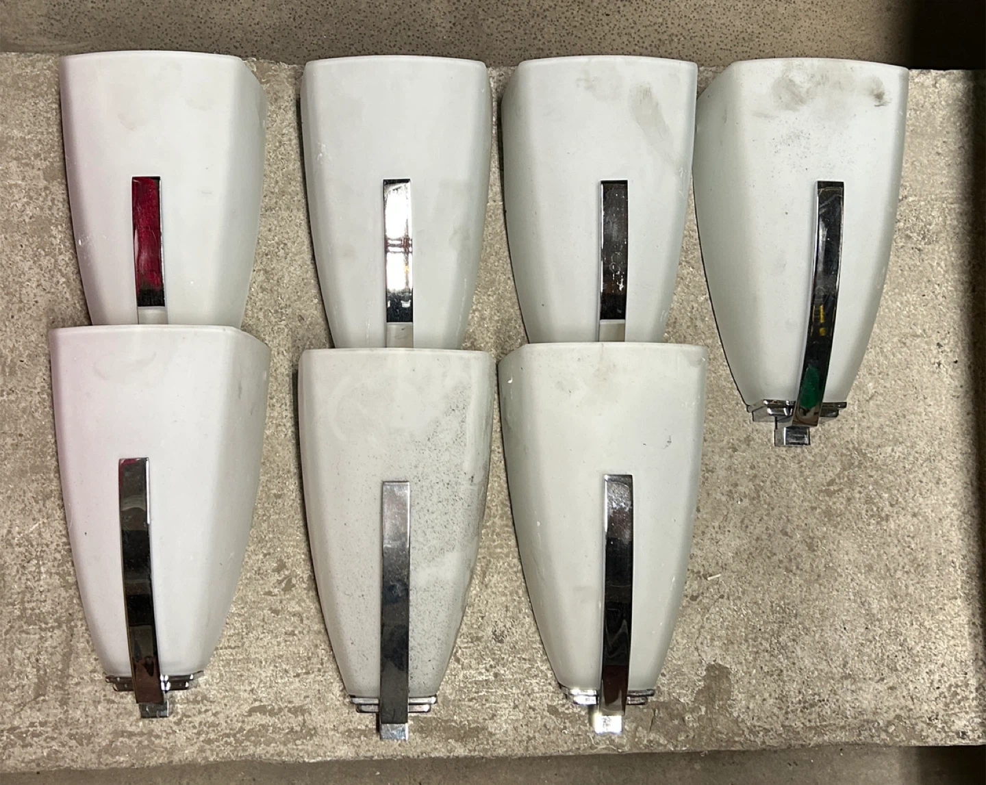 Selling 7 glass shades for wall sconces. white glass with silver accent. Buy all 7 for $20 cash.