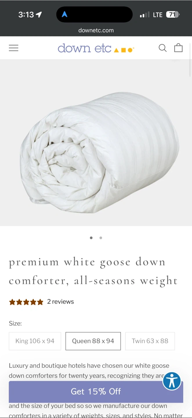 158Selling a Down Etc premium white goose down comforter. It's an all-seasons weight comforter and is in great condition. Size is Queen 88 x 94 inches Good used condition This brand is used in premium hotels, very cozy Retails for $700+ tax, priced to sell https://downetc.com/products/white-goose-down-comforter-all-seasons-weight Pickup in lower east side Cash only