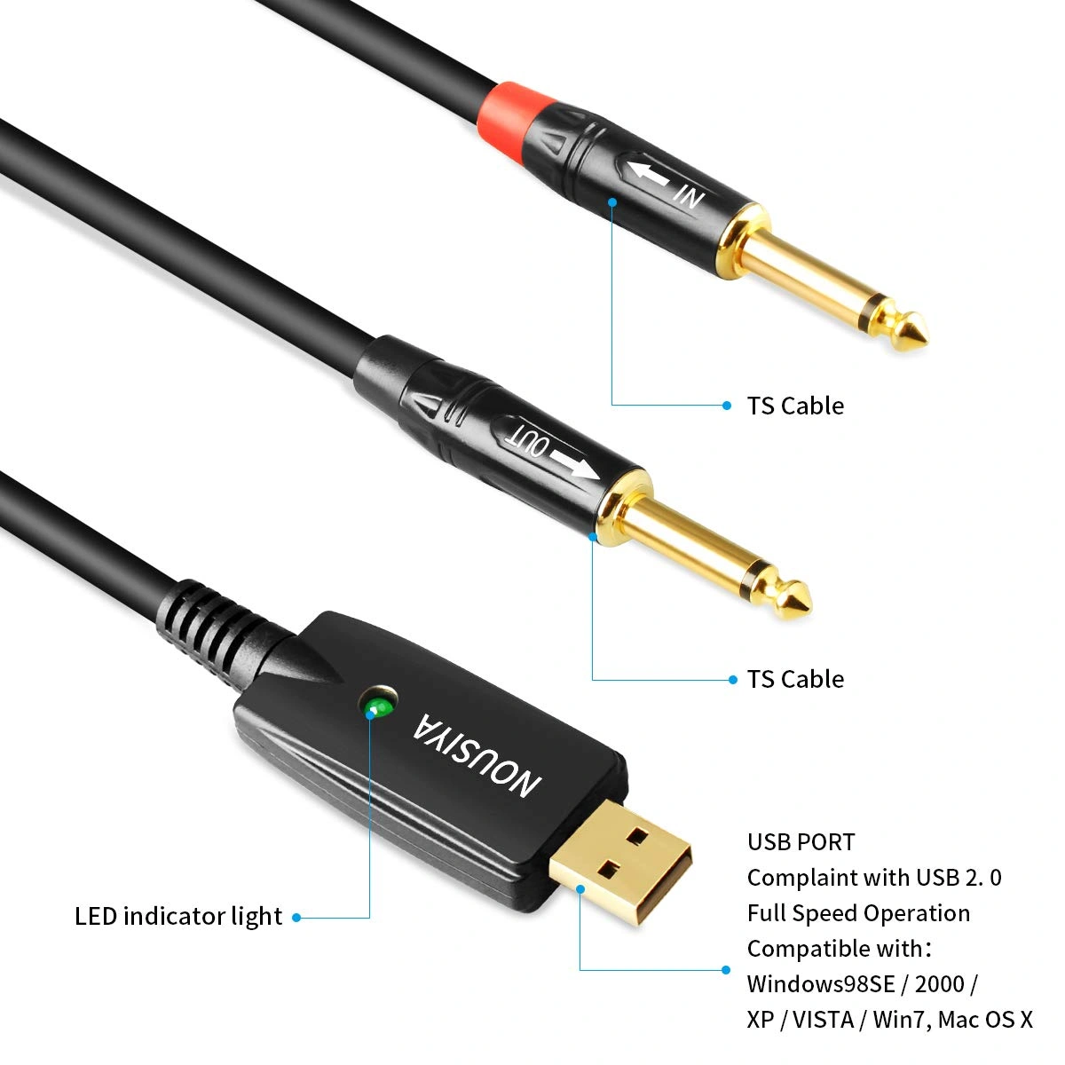 76USB Guitar Cable, NUOSIYA USB Interface Cable to 2 1/4" Line, Dual 1/4" Line in and Out to USB Cable Perfect for Recording Music, Karaoke and Home Audio (10 Feet, Black)