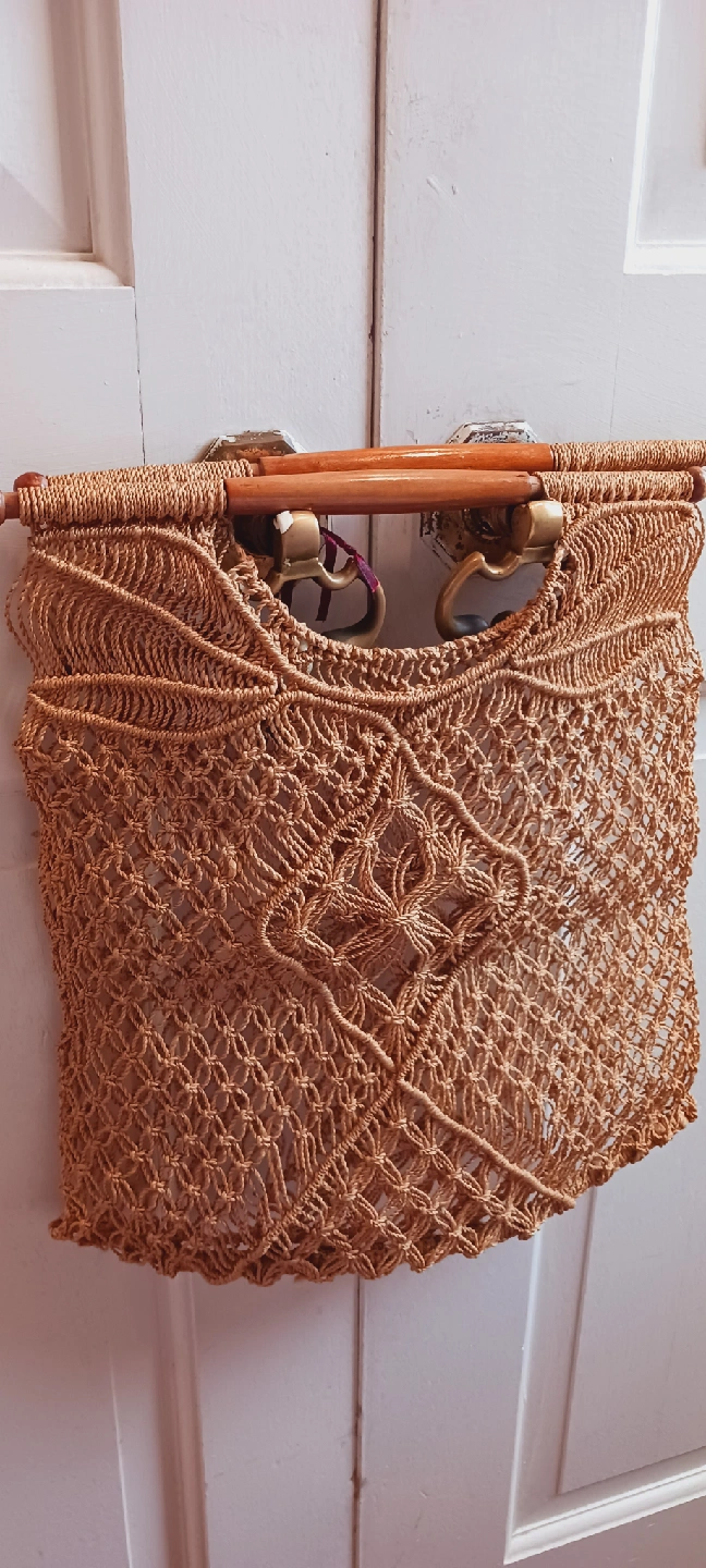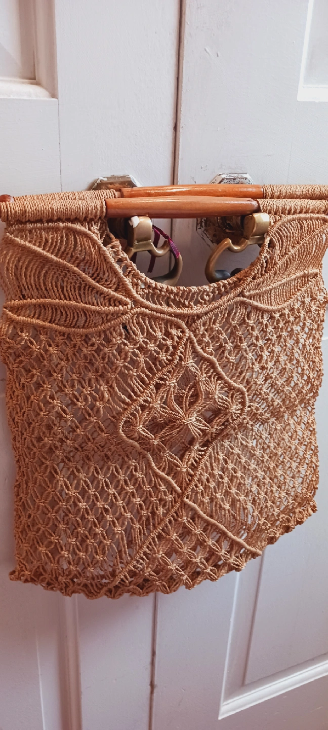 1000+New !!! Gorgeous BOHO STYLE Handcrafted MACRAME CROCHET BAG. This is a handmade macrame bag with wooden handles. It's a unique and stylish piece, perfect for carrying your essentials. The macrame design adds a touch of bohemian flair to any outfit !!! New !! 14"×13". ALL MY PRICES ARE NEGOTIABLE !!!