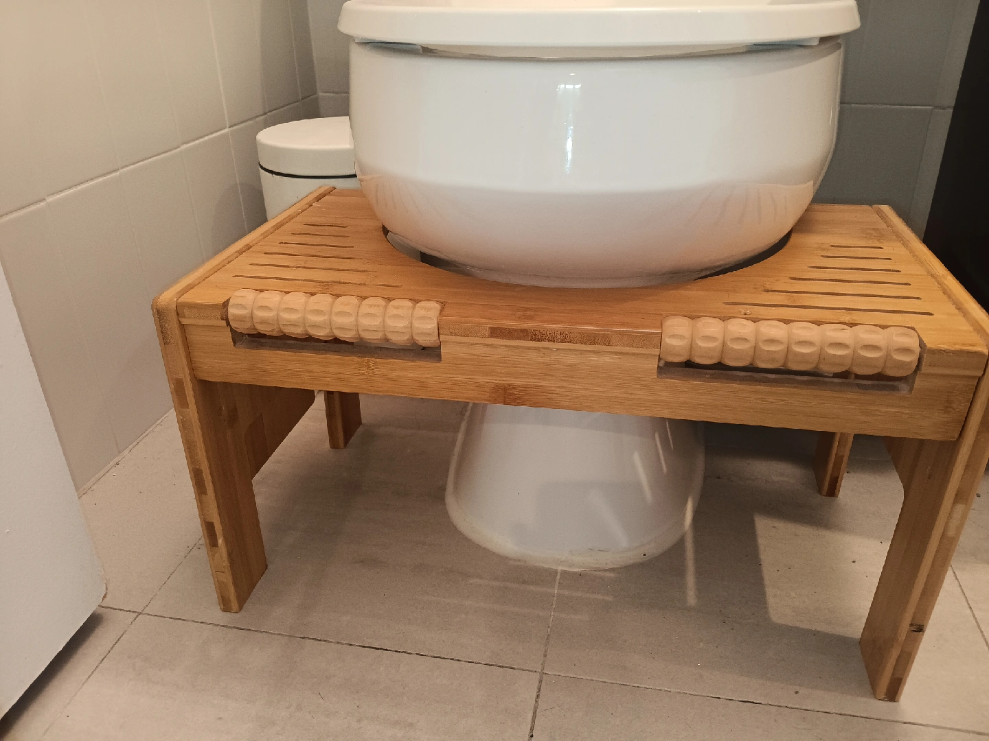 756Selling a bamboo toilet stool. It's in good condition and ready to use. Natural alternative to aid in constipation and or bowel movement. Additional rollers to massage each foot to increase healthy stimulation.