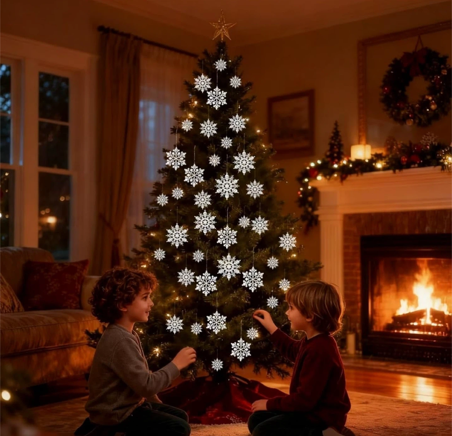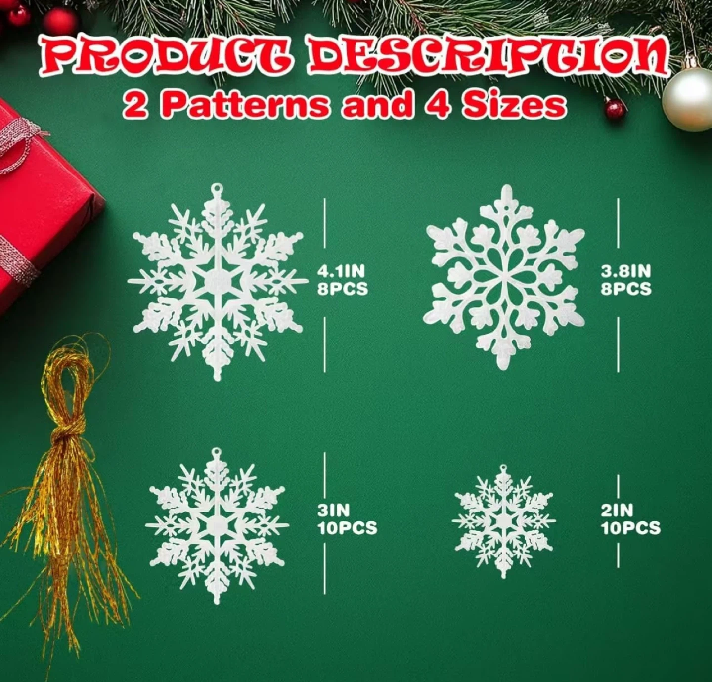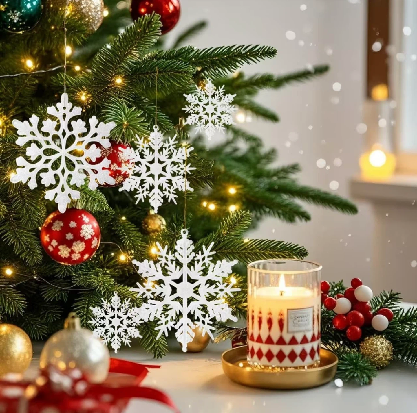 15436 Packs Christmas Ornaments, White Snowflake and Colorful Xmas Tree Decorations, Winter Wonderland Holiday Decor for Home, Adornos de Navidad.