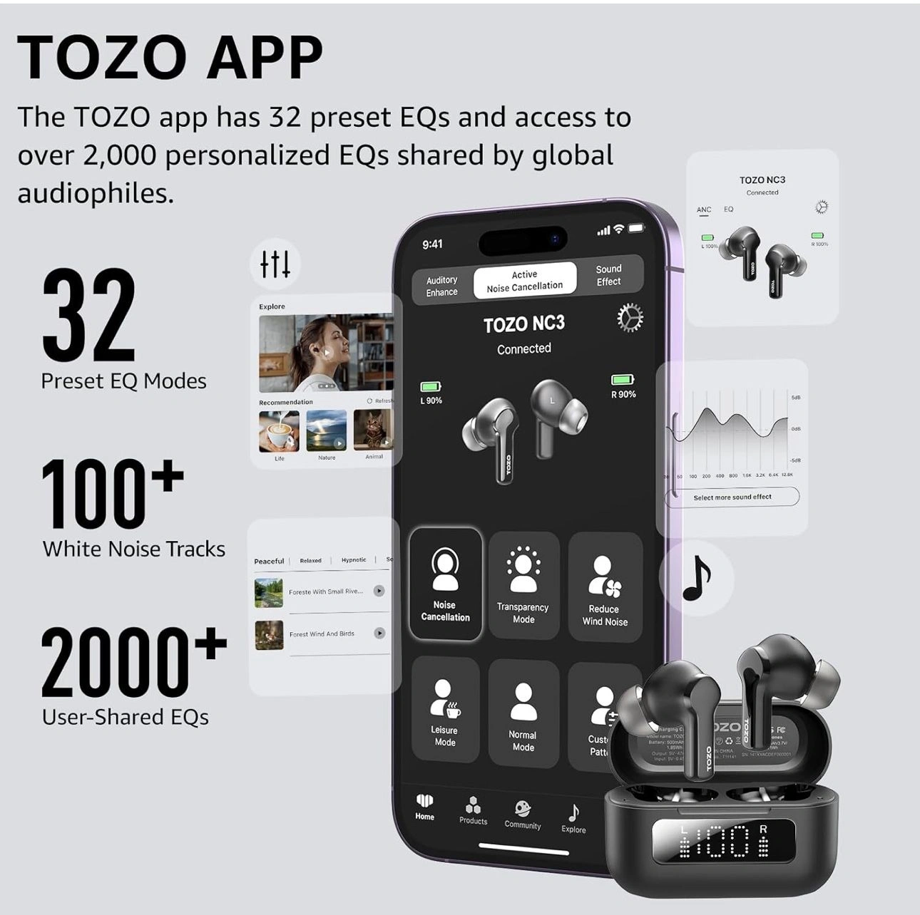 86Hybrid Active Noise Cancelling Wireless Earbuds with 6 Mics AI Clear Call Ear Buds 55H Playtime with LED Display 32 Preset EQs via APP Bluetooth 5.3 IPX8 Waterproof in Ear Headphones. Let me know if you're interested!
