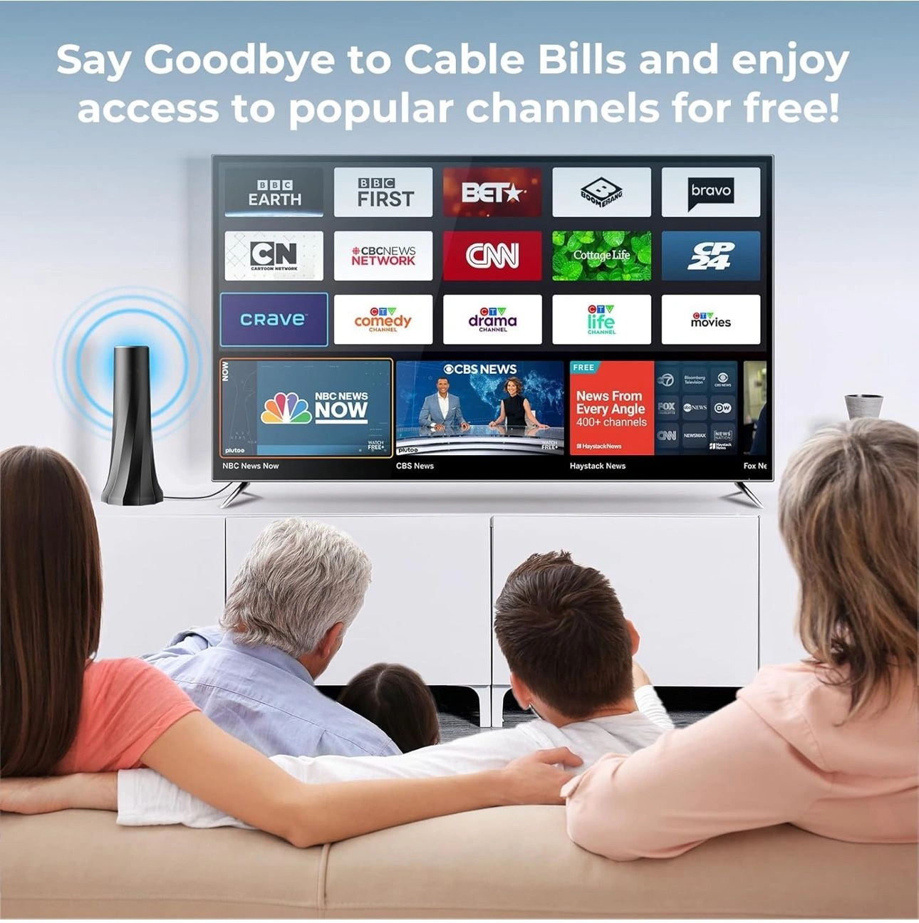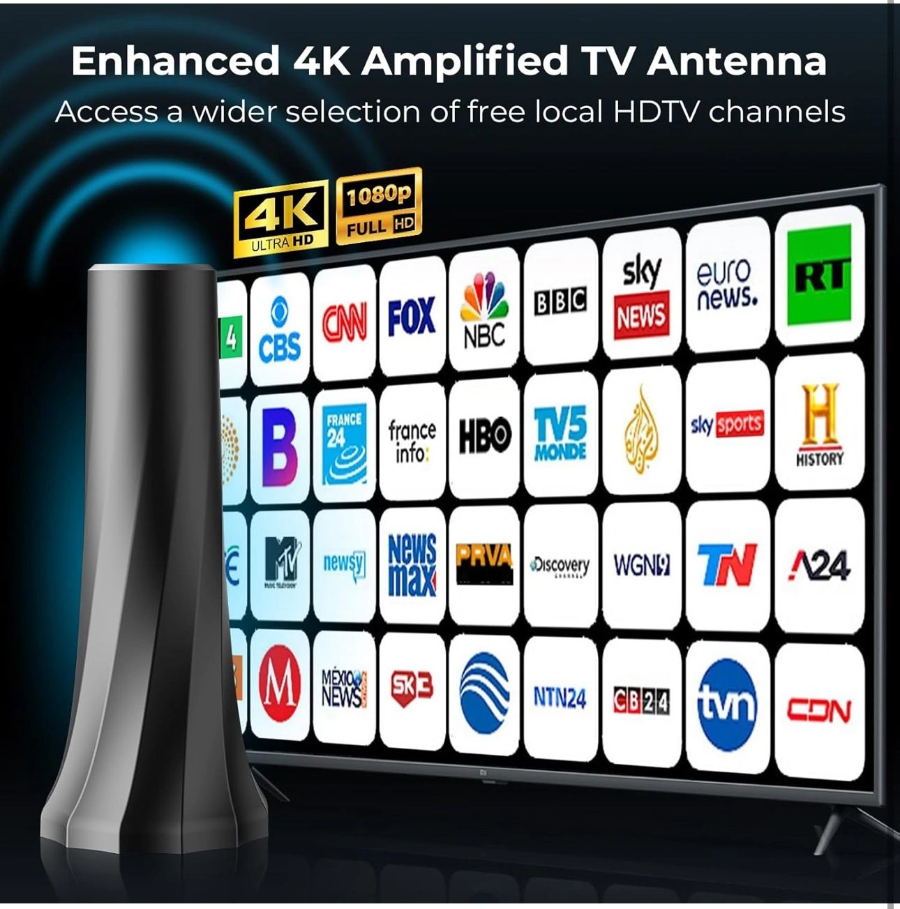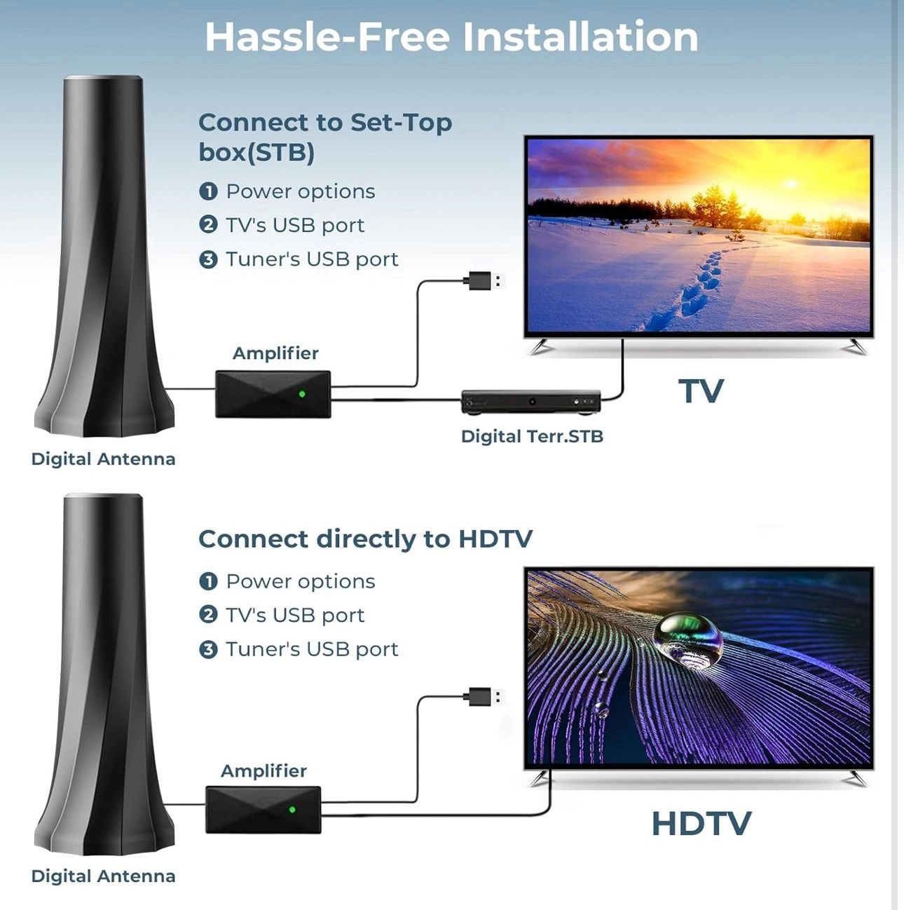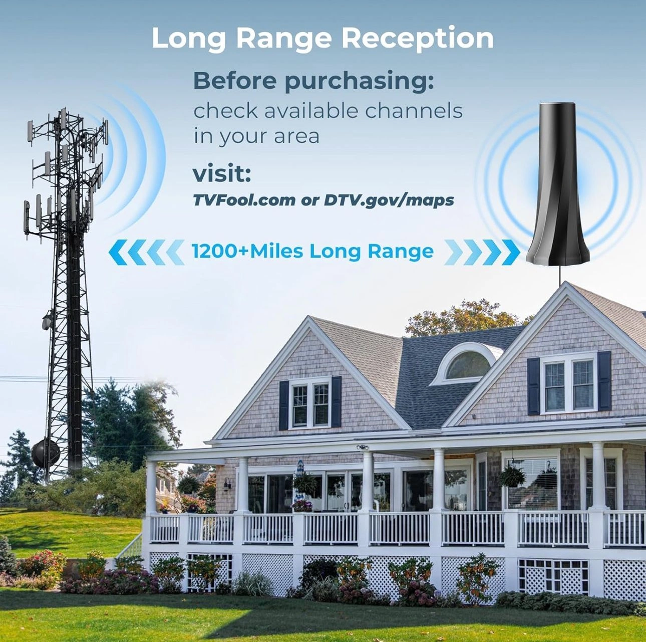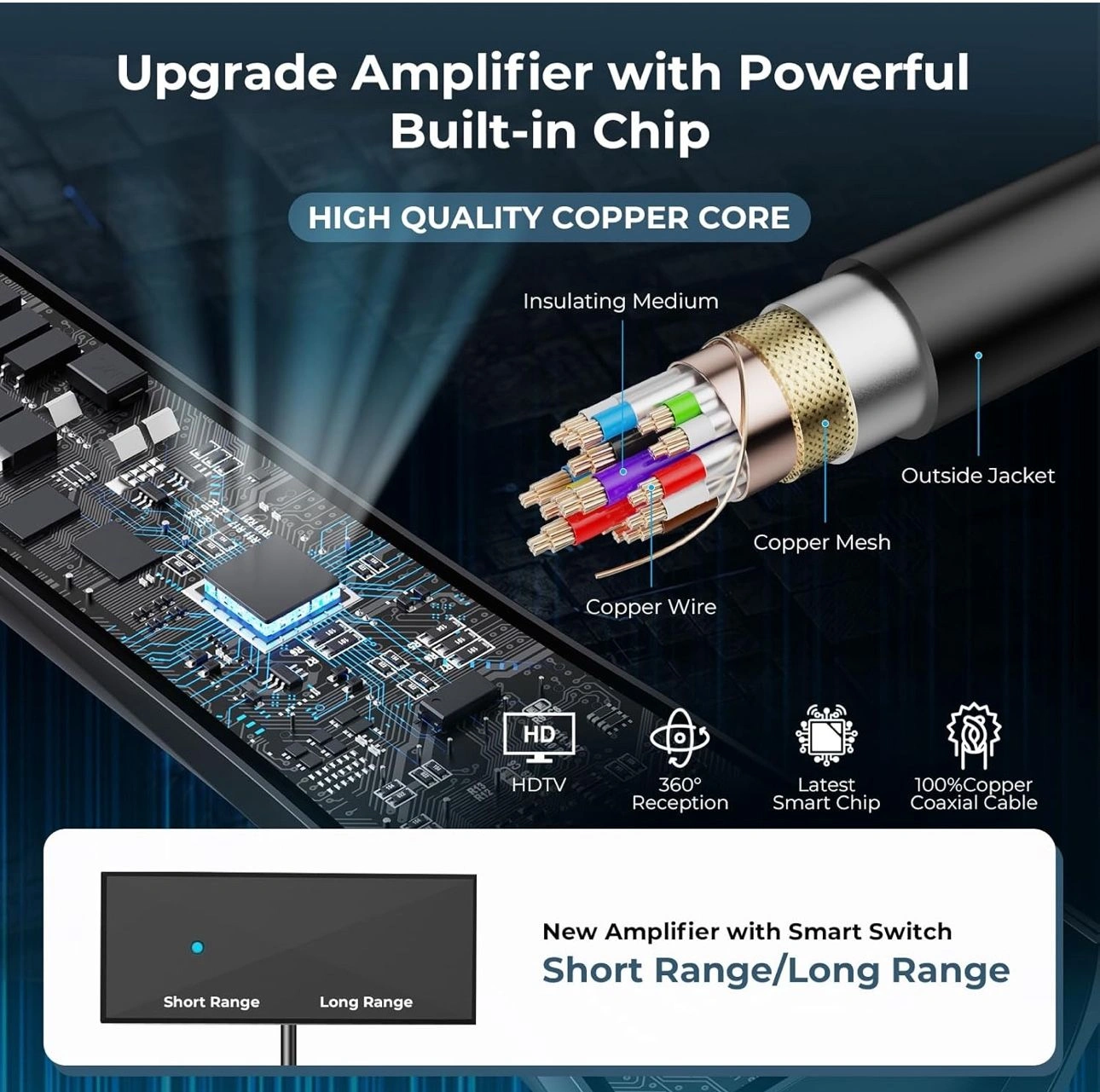 86TV Antenna for Smart TV and Old TV, 1900+ Miles Range HD Digital TV Antenna Indoor with 360° Signal Strongest Booster, Supports Local Channels 1080P 4K Reception 16.43FT Long Cable