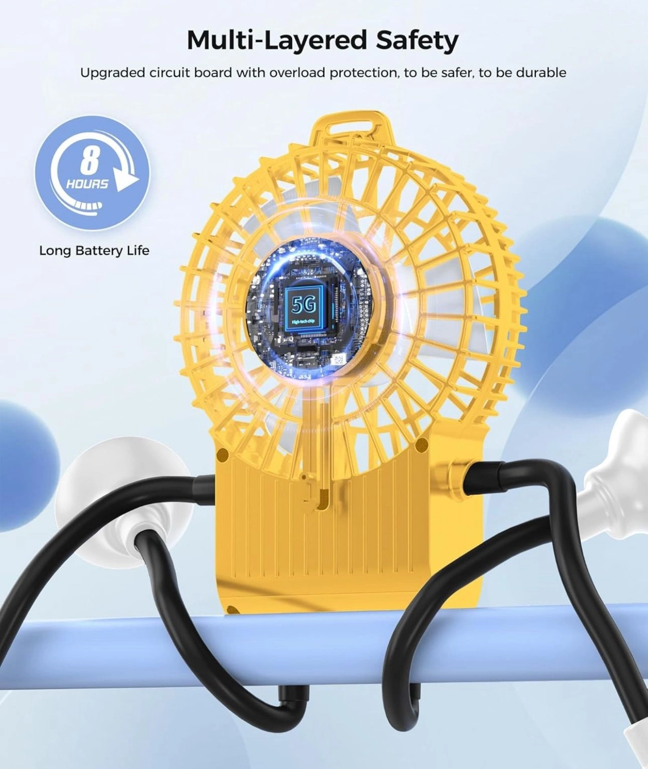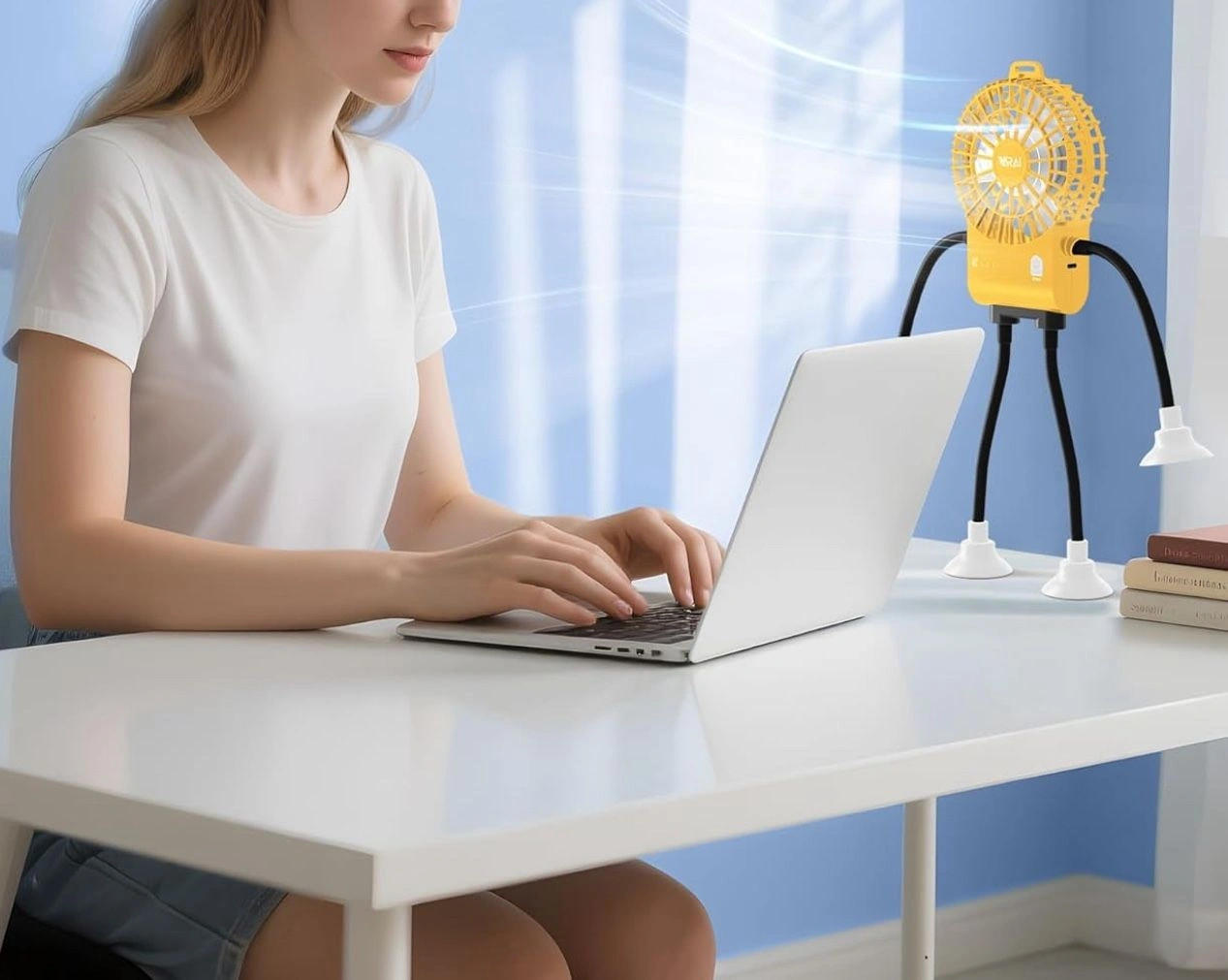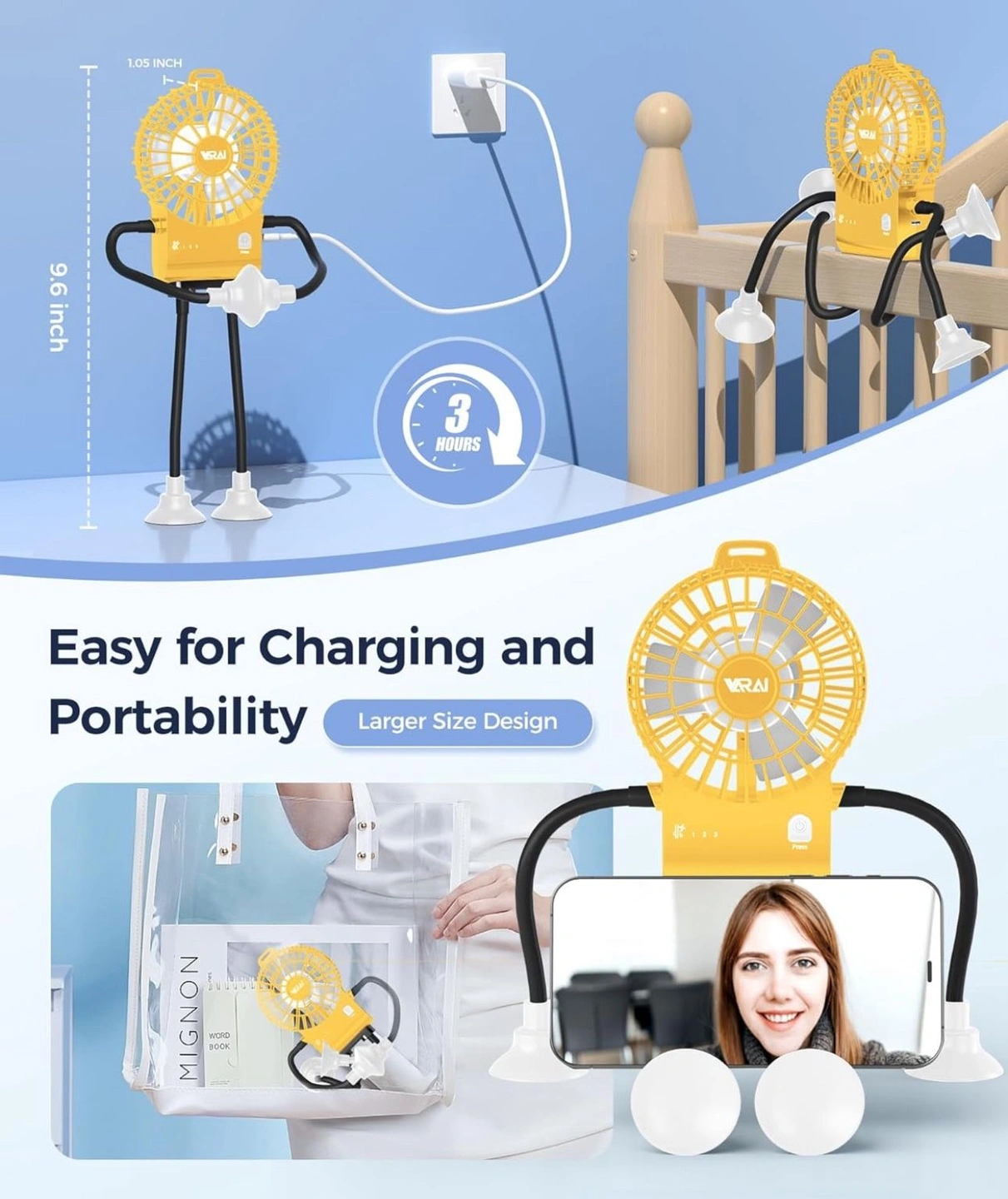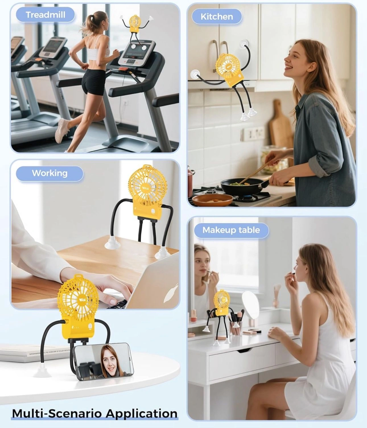 97Small Robot Fan, Fun Desk Fan with Suckers, Rechargeable Portable Fan and Phone Stand 2 in 1 for Office, Travel and Cars