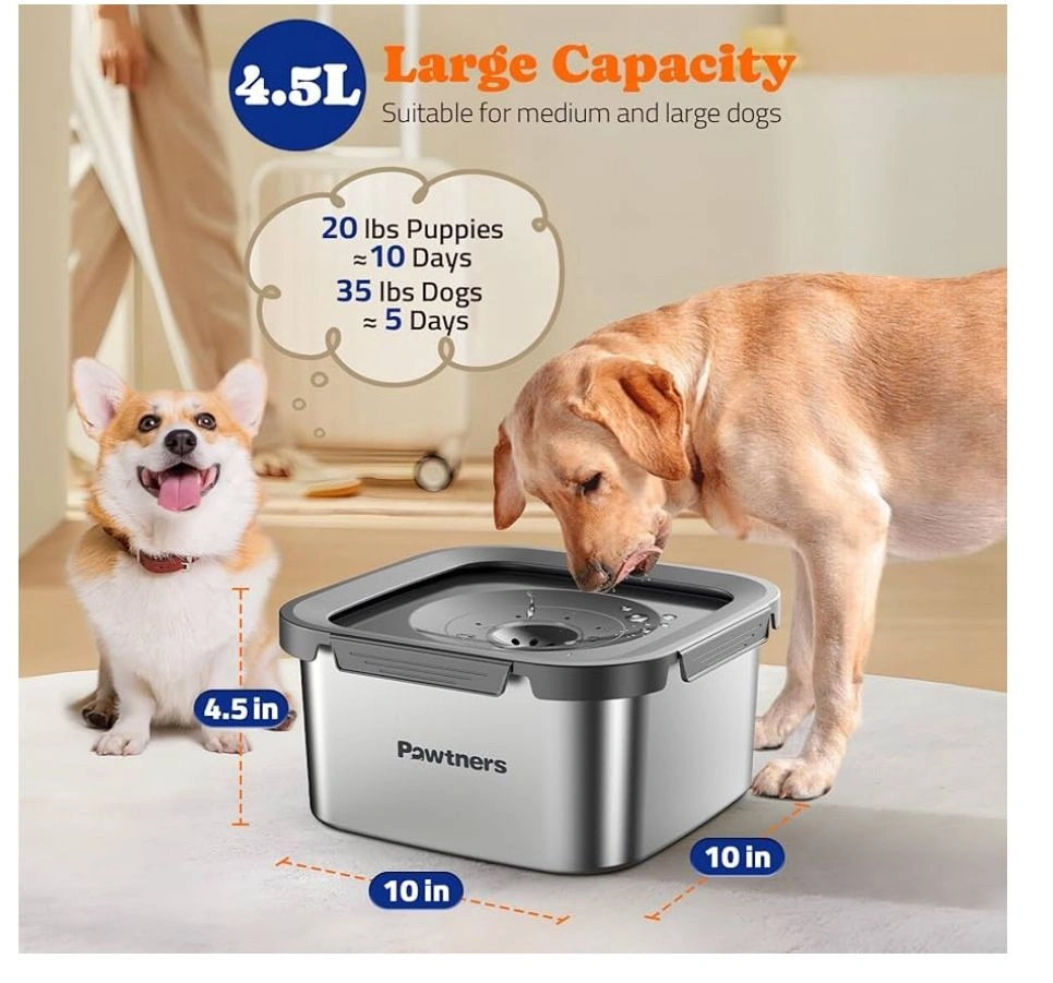 864.5L Stainless Steel Dog Floating Bowl, Slow Water Bowl for Dog with Filter, Non-Slip Base, No Splash Water Bowl for Medium Large Messy Drinkers Grey