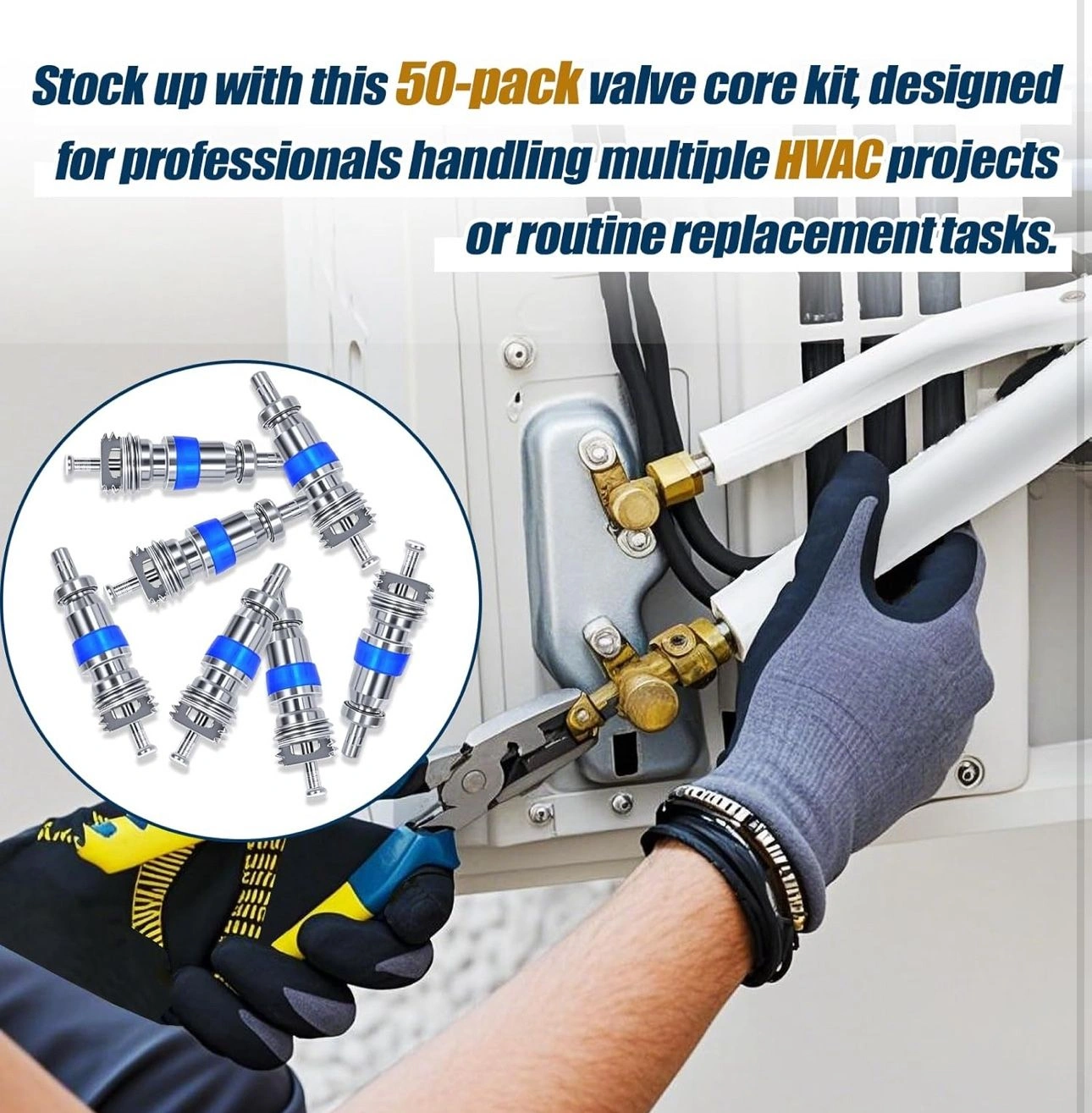 97HVAC Schrader Valve Core for R32 R410A R22 Refrigerant, High Pressure AC Valve with Teflon Seal, Replacement Part for Air Conditioning and Refrigeration Systems (Pack of 50)