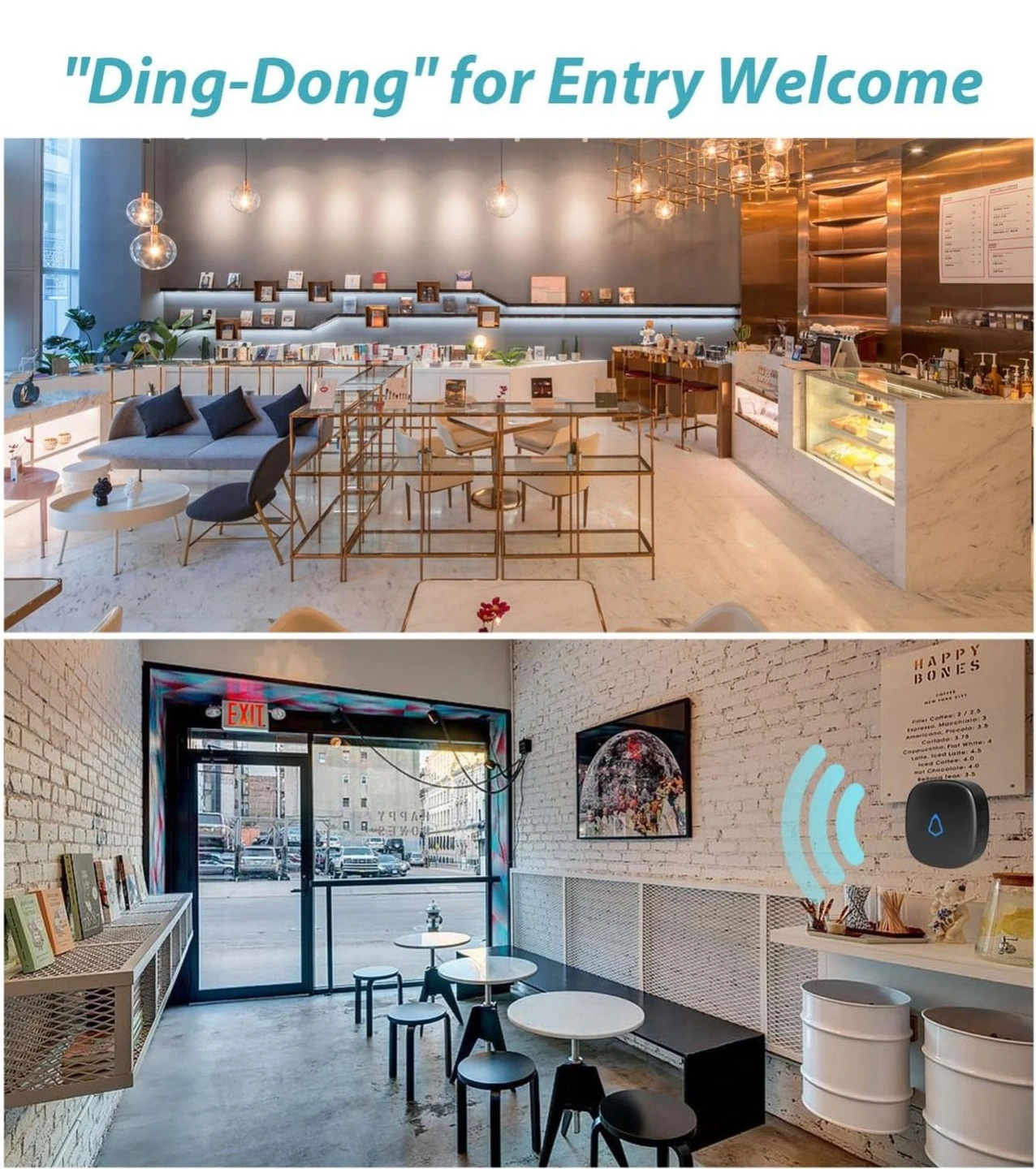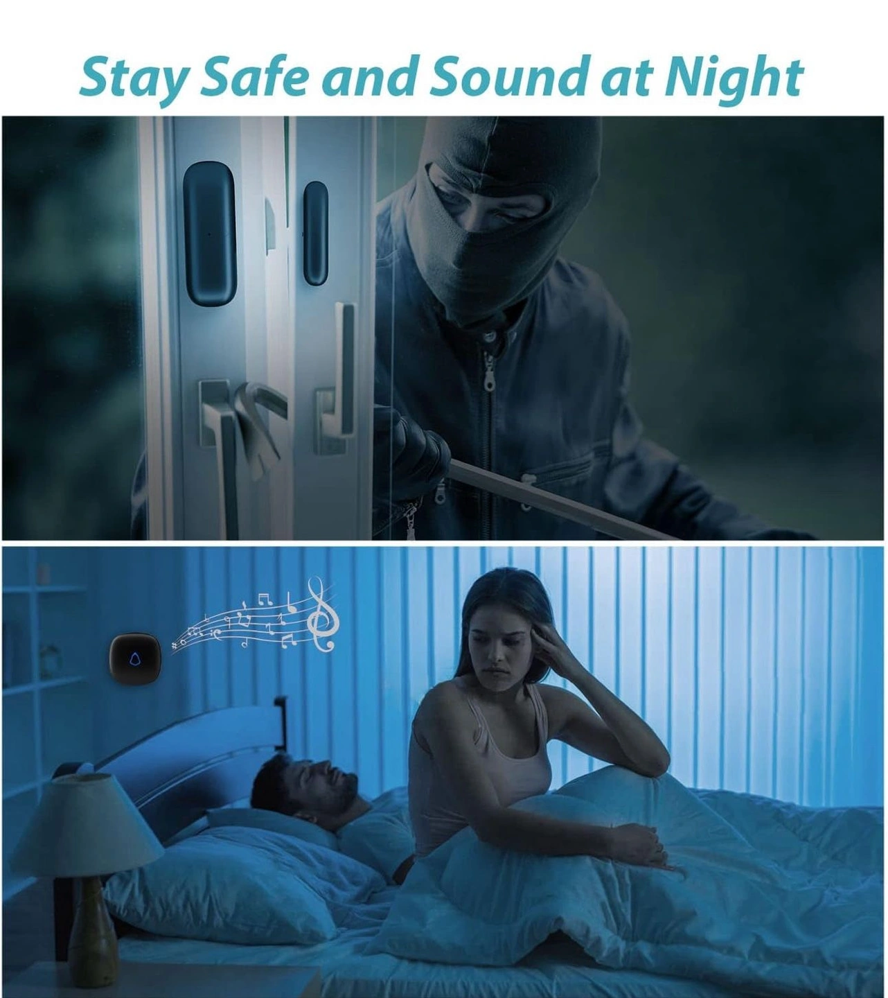 86METAK wireless door open contact sensor alarm with 500 ft range, 58 chimes and 5 volume levels for business/store/home/office when entering, 1 transmitter + 1 plug-in receiver.