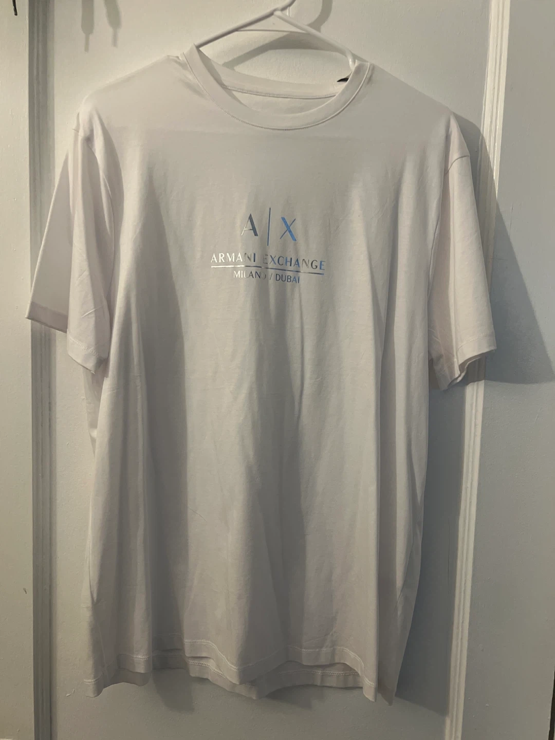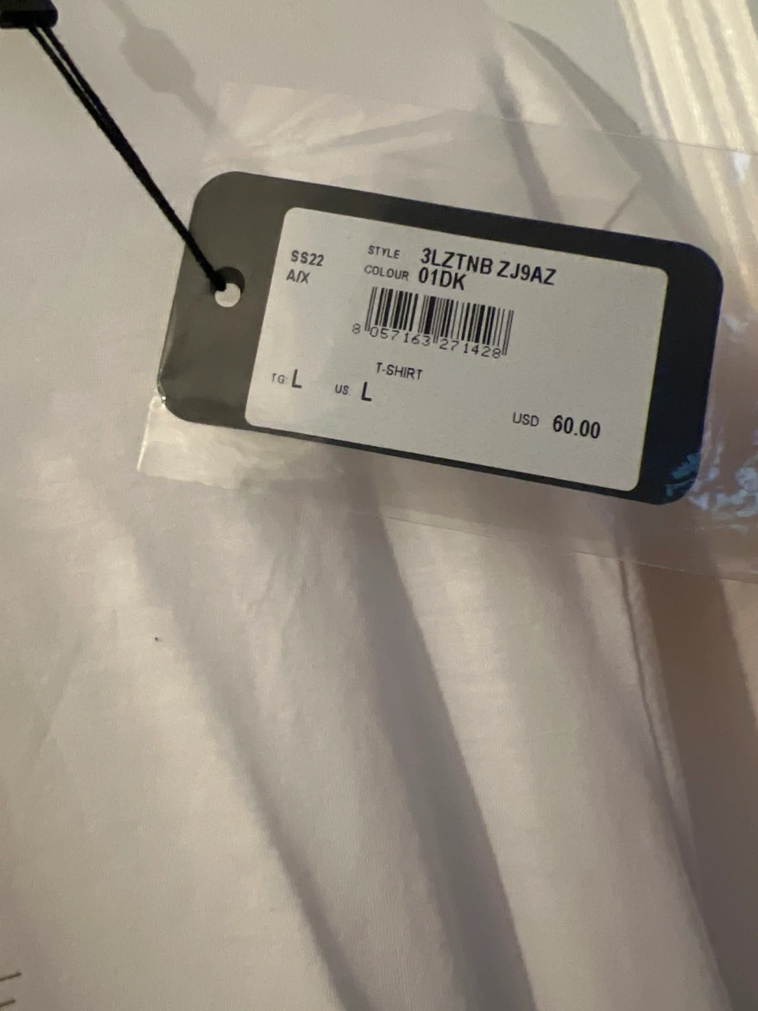 18Selling a white Armani Exchange T-shirt in size L. It's in great condition and ready for a new home! The style number is 3LZTNB ZJ9AZ and the color is 01DK. Originally bought for $60