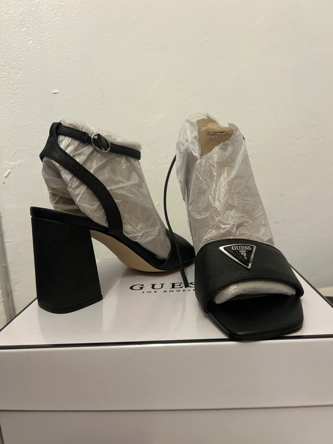 18Selling a pair of Guess Gelyae sandals in black, size 8M. They come with the original box. These stylish sandals are perfect for any occasion!
