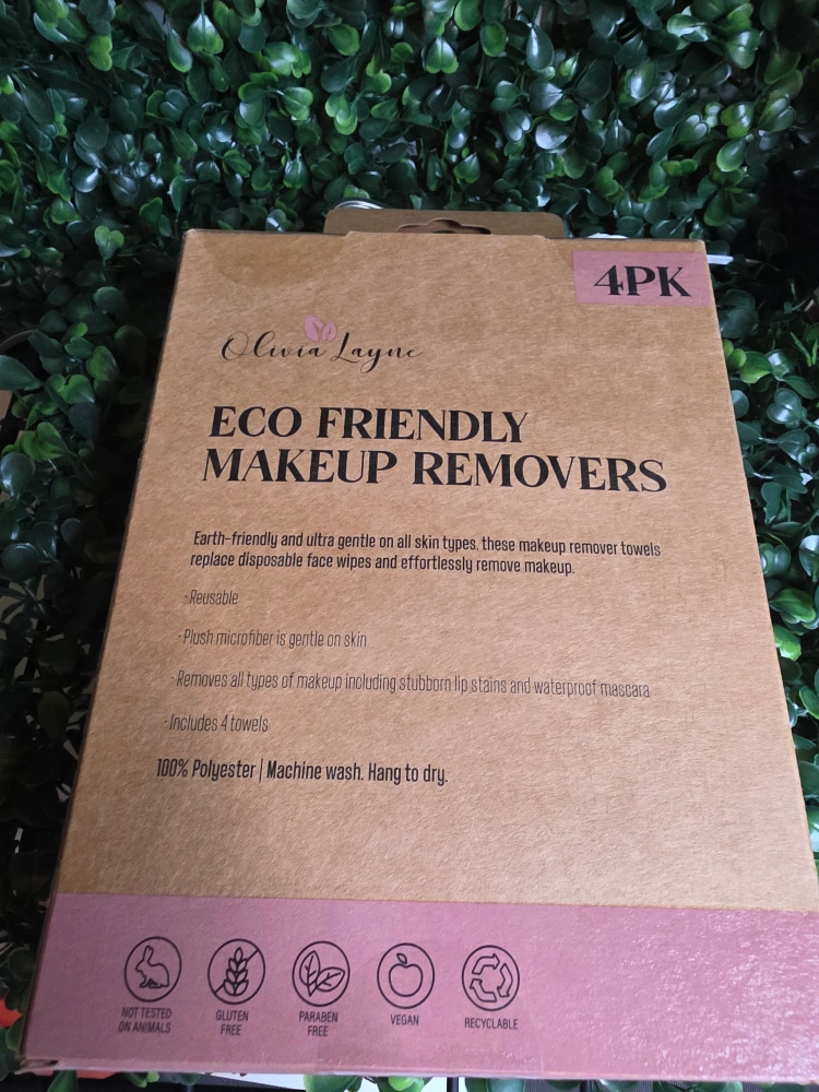 193Selling a 4-pack of Olivia Layne Eco Friendly Makeup Removers! These makeup remover towels are earth-friendly and ultra gentle on all skin types, designed to replace disposable face wipes and effortlessly remove makeup. They're reusable and made with plush microfiber that's gentle on the skin. Great for removing all types of makeup, including stubborn lip stains and waterproof mascara! Includes 4 towels and are made of 100% Polyester, machine washable and hang to dry