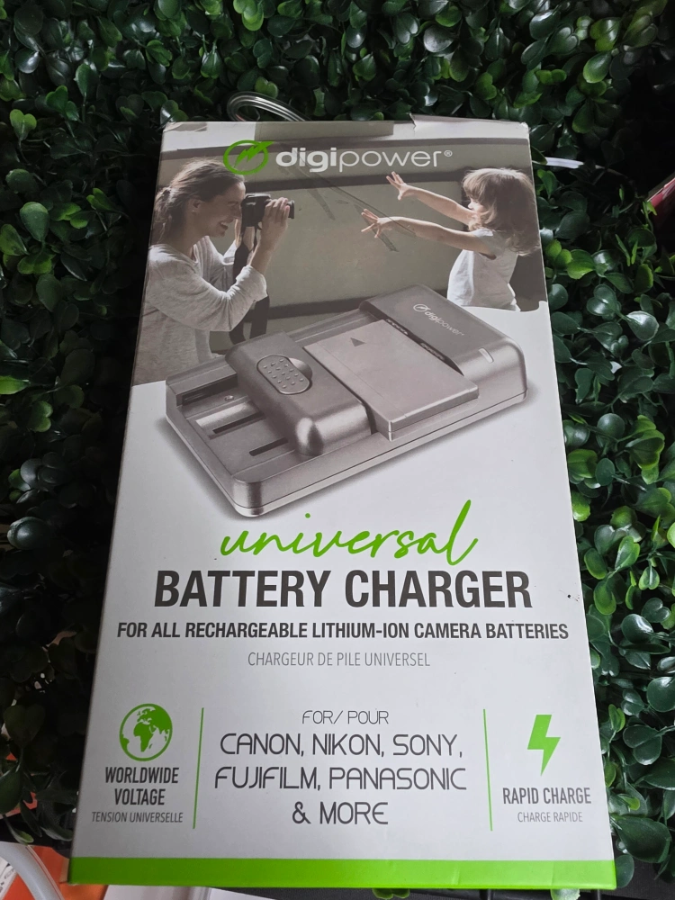 193Selling a Digipower universal battery charger! It's designed for all rechargeable lithium-ion camera batteries and is compatible with Canon, Nikon, Sony, Fujifilm, Panasonic, and more. It features worldwide voltage and rapid charge. The box and adapter are included