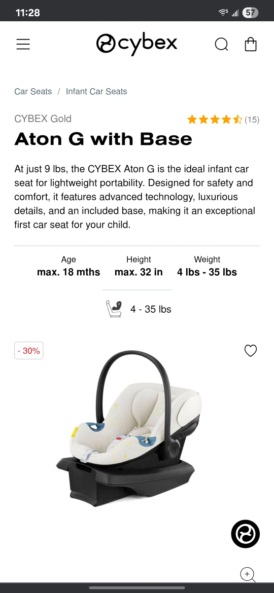 118Selling a Cybex Aton G US infant car seat in a nice beige color! It's in great condition and ready for a new little one. - Manufactured in 2023 November - Model: Aton G US incl. Base/Shell Beige/Light Beige - Expires on 2028 November 07 It's been gently used for less than a year with infant. All fabric is easily takes off and can be machine washed. Note: this is not sensorsafe technology.