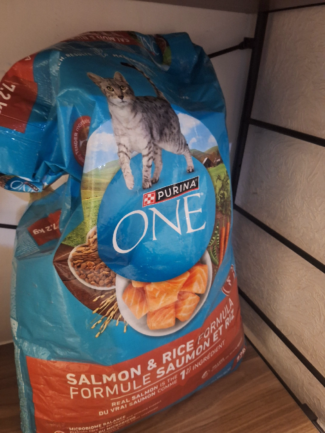 Selling a bag of Purina ONE Salmon & Rice Formula cat food. It's a 7.2 kg bag, perfect for keeping your feline friend happy and healthy! The formula contains real salmon as the first ingredient.