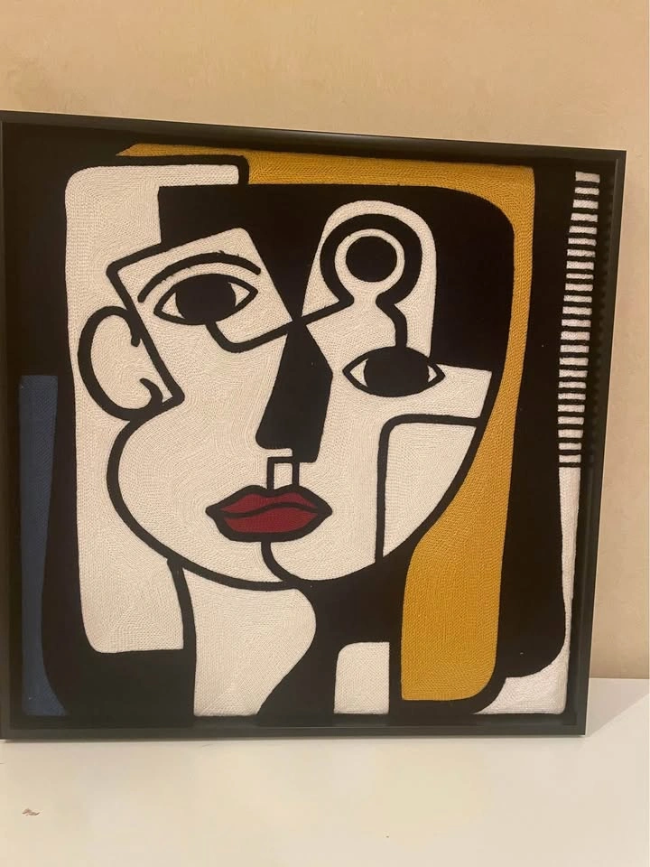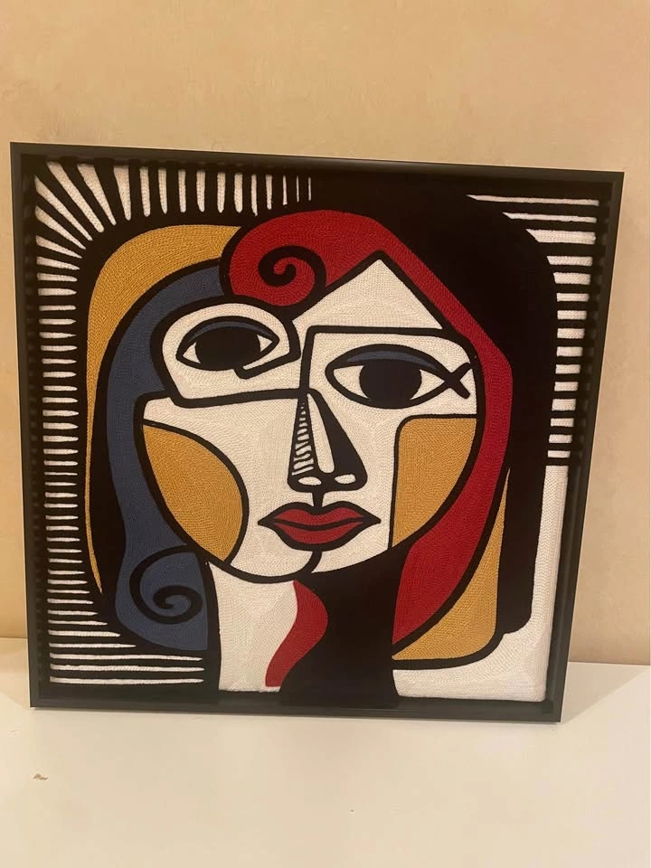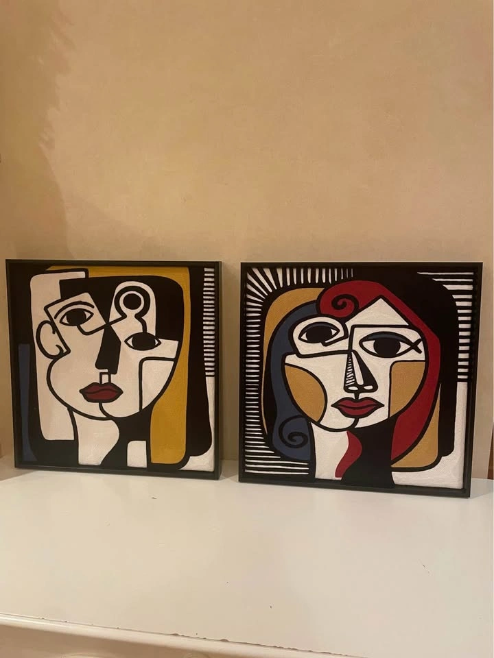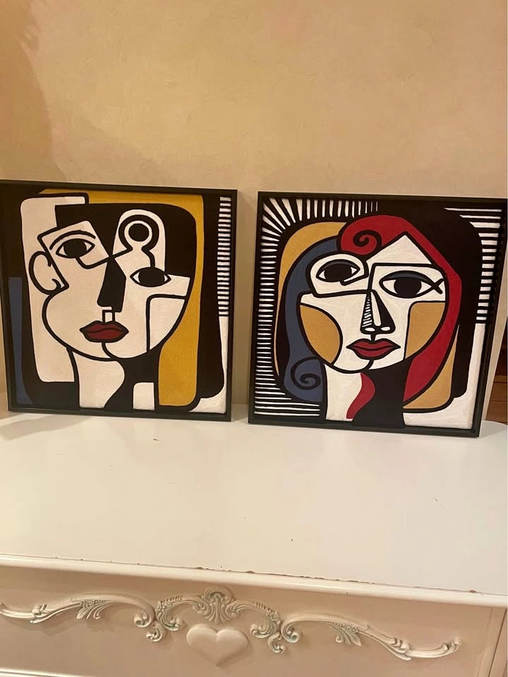 60Pair of wood frames 17”x17”x1.25”, picture made of material like needle point fabrics, sold separately for $25 each or pair for $45, new never used