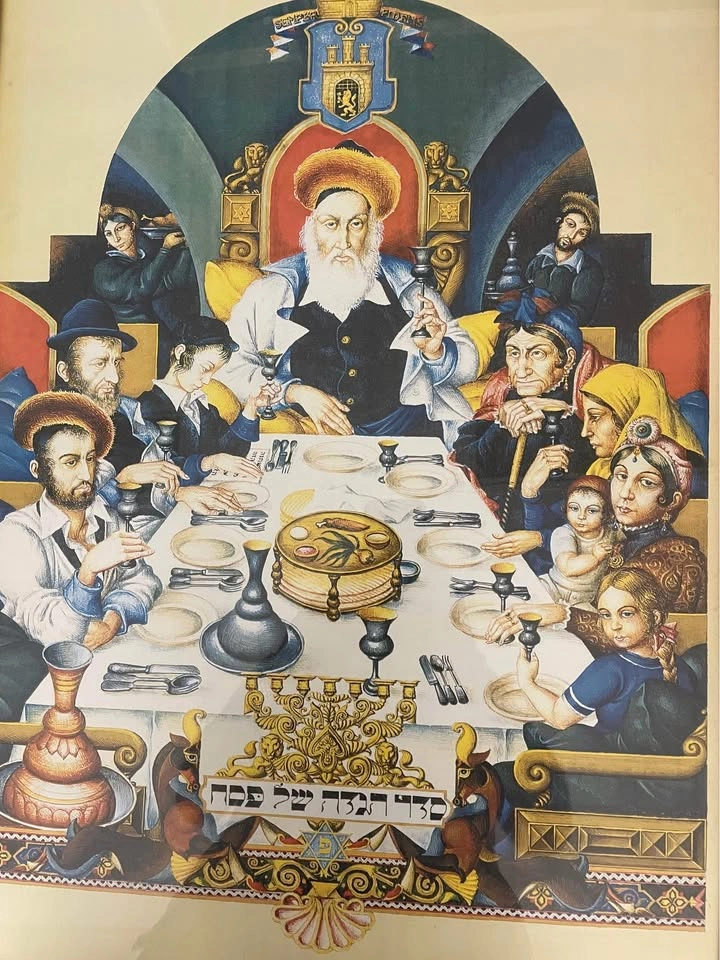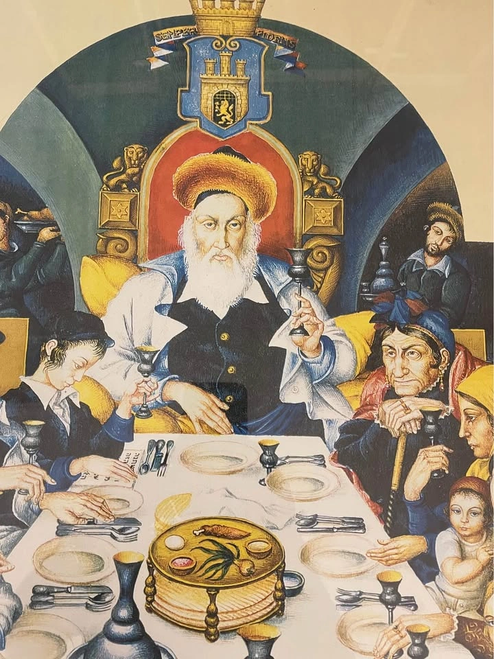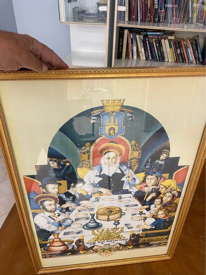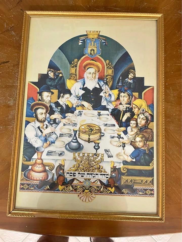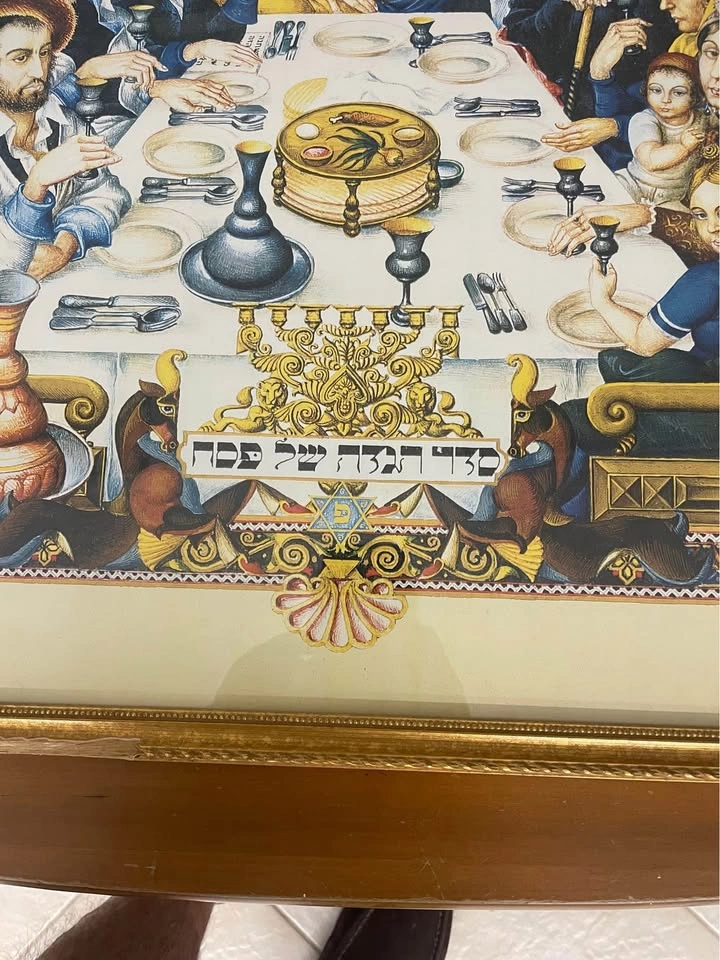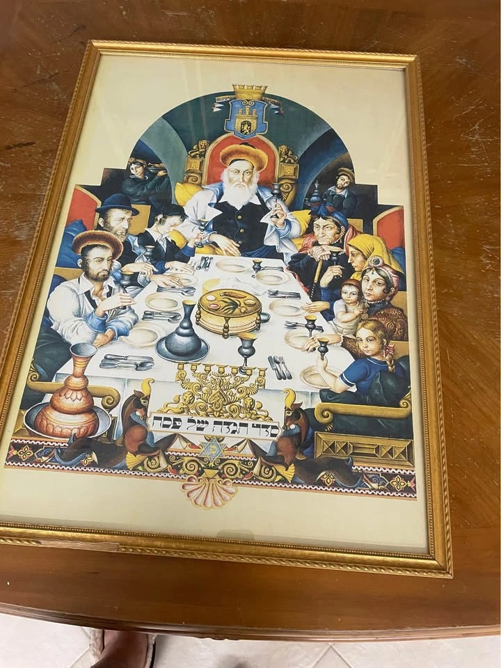 60Framed with glass 20”x27”, depicts the Seder, the Traditional Dinner of the night of Passover, just needs to fix the hook , for pick up in Brooklyn 11223