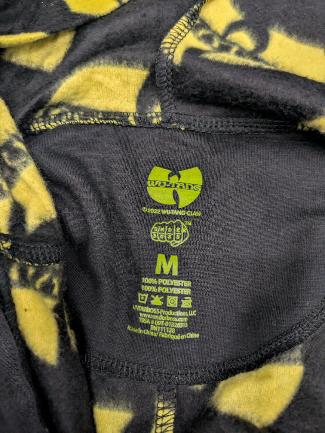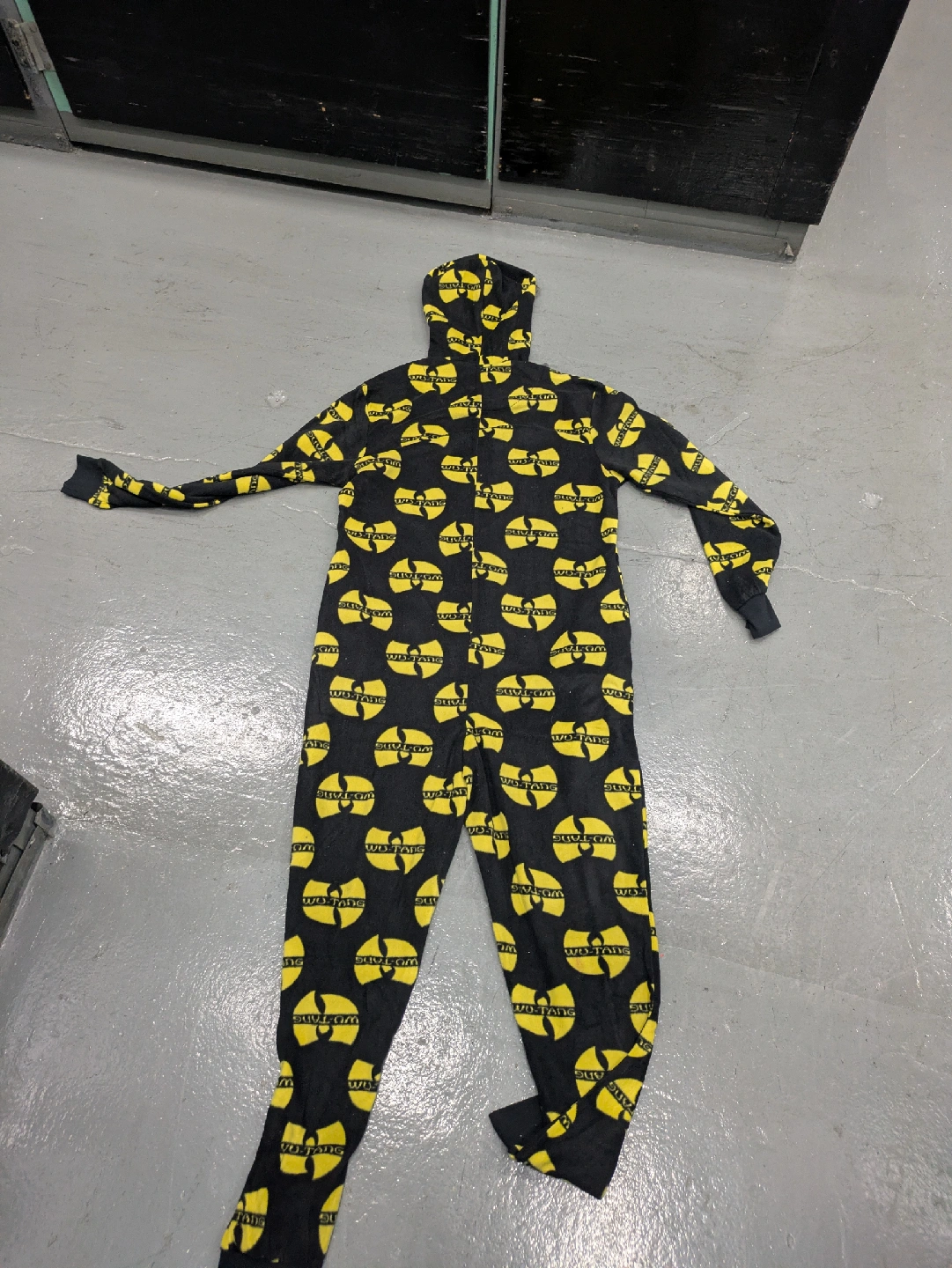 145Selling a Wu-Tang Clan Union Suit in size M. It's black and yellow with the Wu-Tang Clan logo all over. The material is 100% polyester. It’s in great condition!