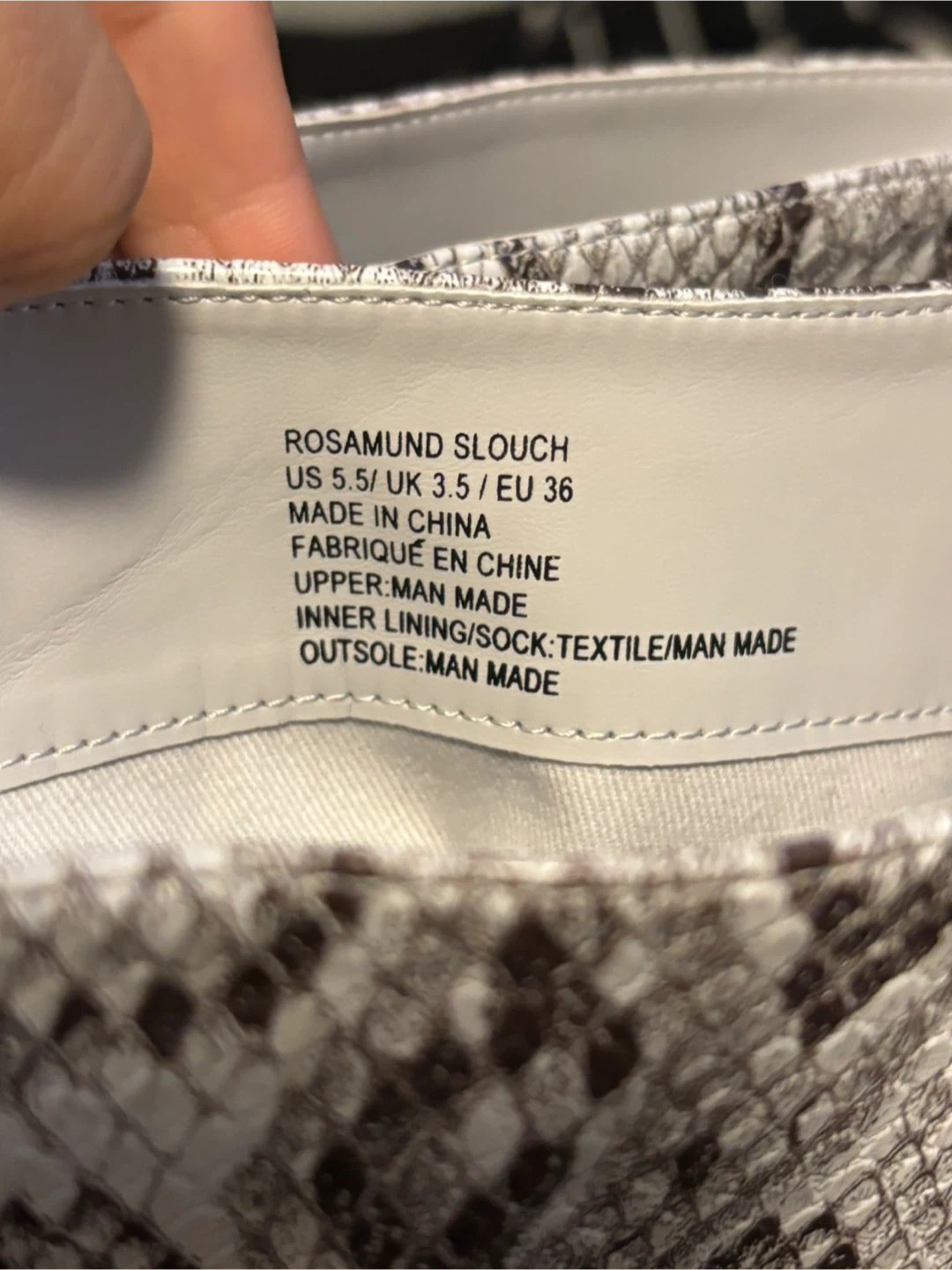 80Selling a pair of Rosamund Slouch boots in US size 5.5 / EU size 36. The upper material is man-made, with an inner lining of textile and man-made materials, and an outsole that is man-made -PICK UP ONLY-