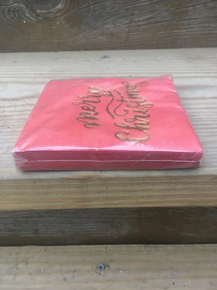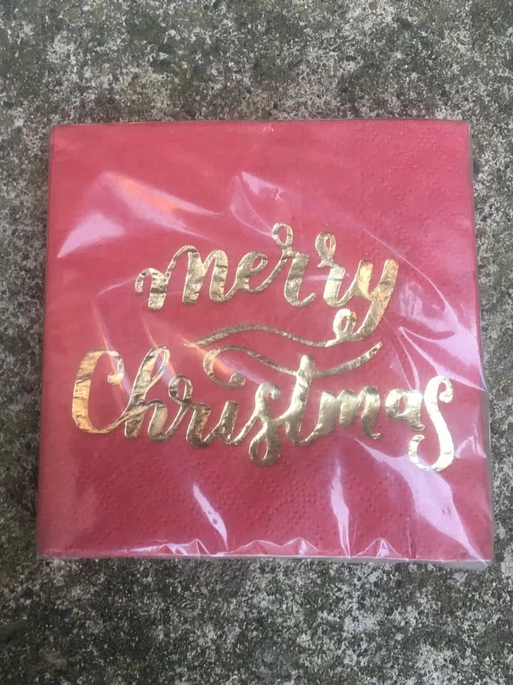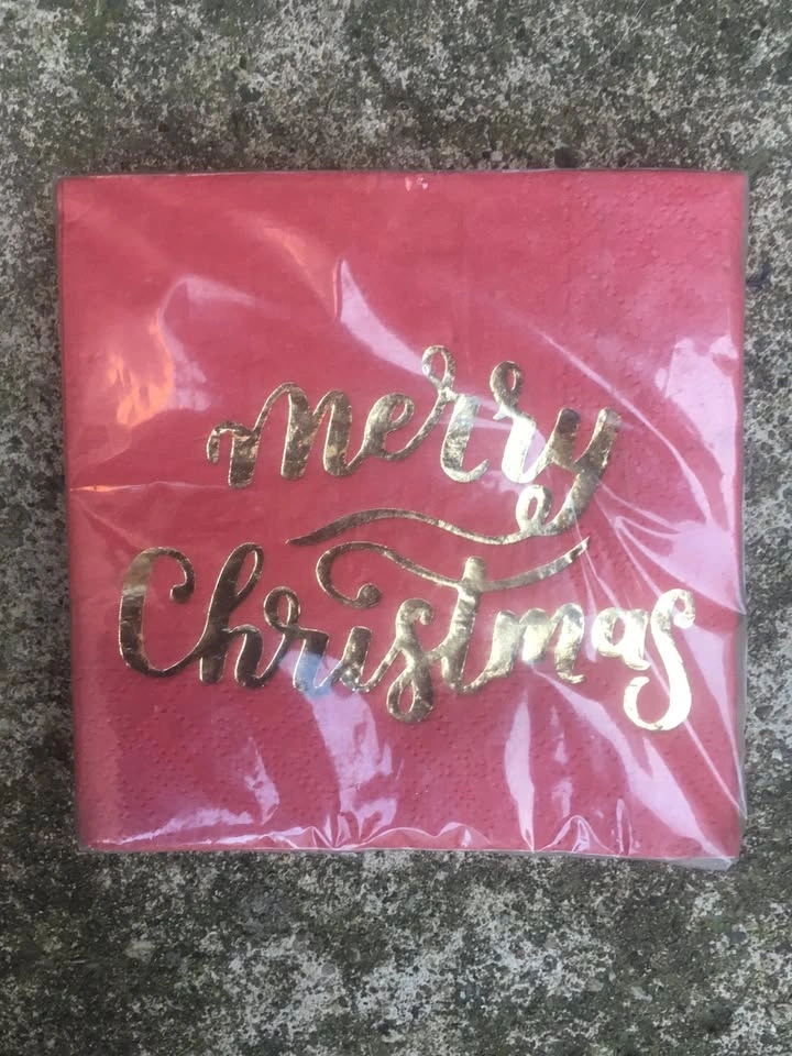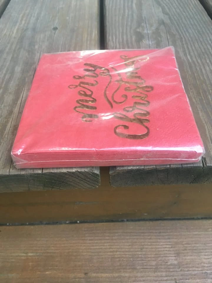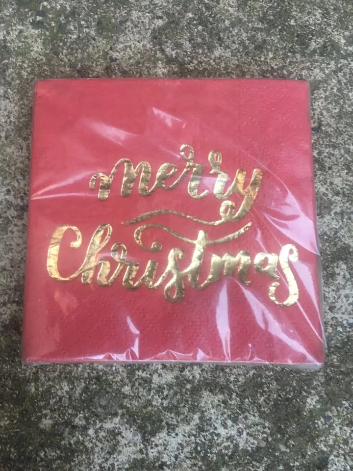 Red With Gold Foil Merry Christmas Cocktail Napkins - 5x5" - 25 Count Brand new in original shrink wrap. Classy decorating touch for your Holiday party. From a smoke and pet free home. Check out in person before purchasing. Thanks for looking.