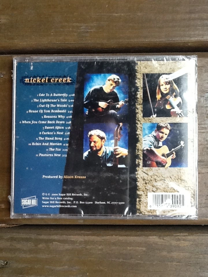 New and unopened album by Nickel Creek from 2000 with original cover with fourth member Scott Thile who left the group after this was released. Track listing is as follows : 1 Ode To A Butterfly 2 The Lighthouse's Tale 3 Out Of The Woods 4 House Of Tom Bombadil 5 Reasons Why 6 When You Come Back Down 7 Sweet Afton 8 Cuckoo's Nest 9 The Hand Song 10 Robin And Marian 11 The Fox 12 Pastures New From a smoke and pet free home. Check out in person before purchasing. Thanks for looking.