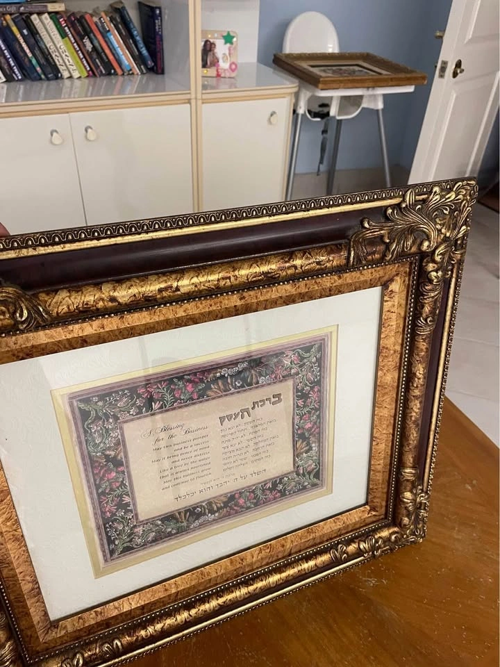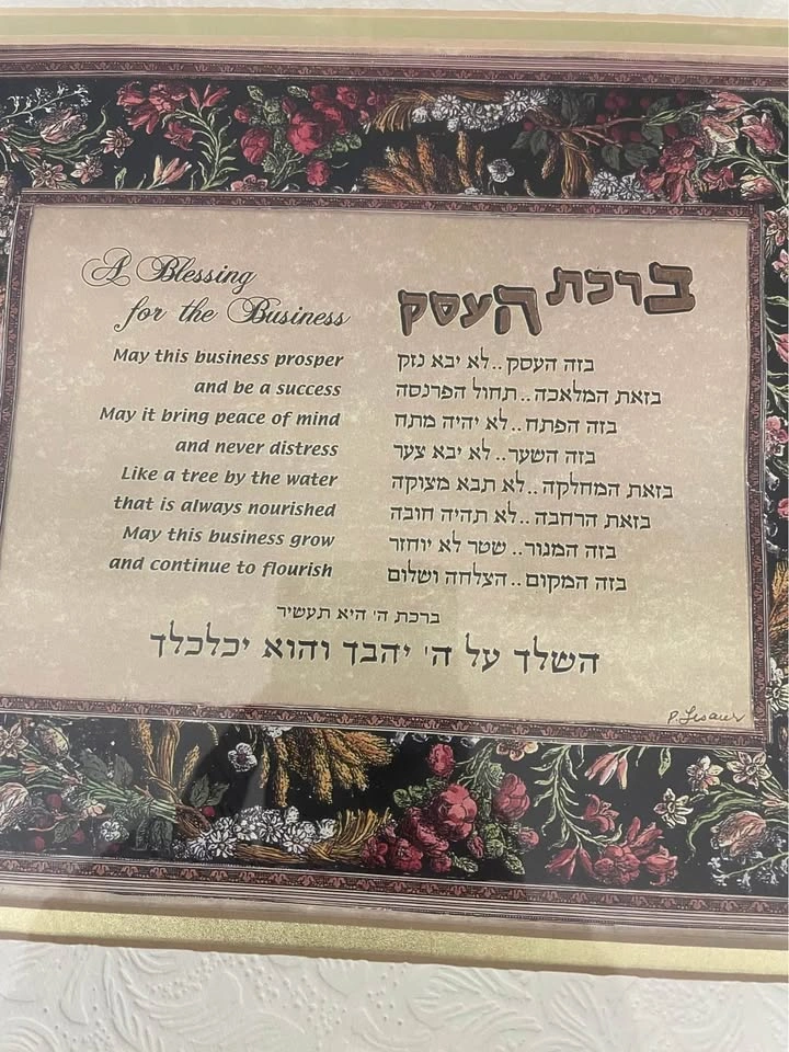 60Beautiful frame 21”x18” prayer and blessings of business in Hebrew, glass front