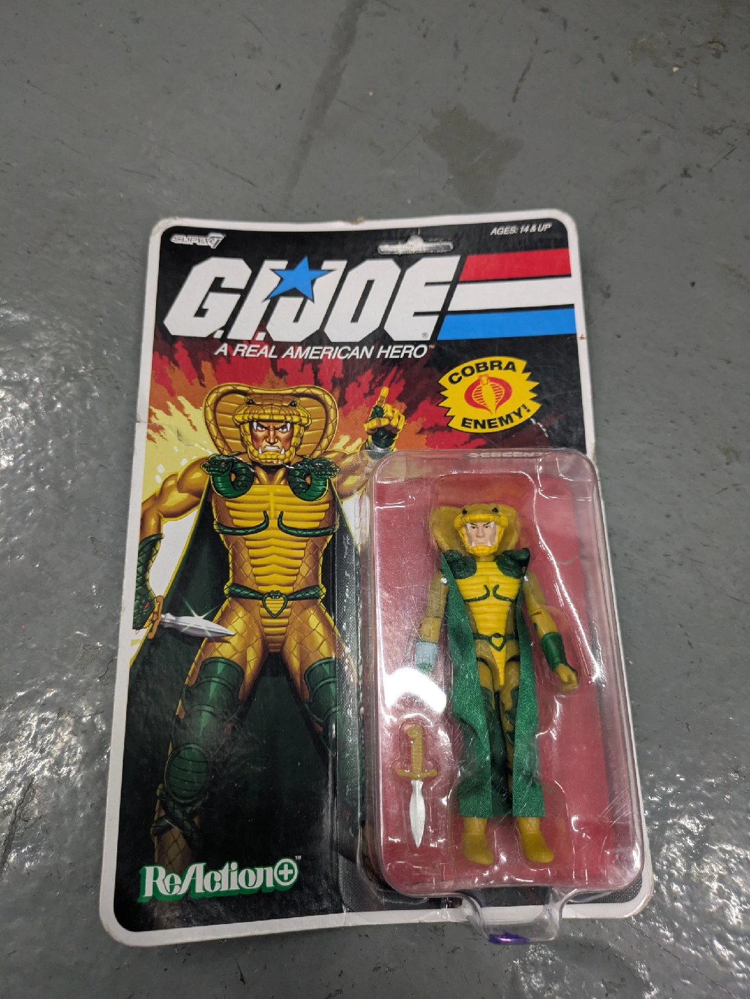 Selling a G.I. Joe Cobra Emperor ReAction figure! This is a retro-style action figure based on the classic G.I. Joe franchise. It's a great collectible for fans of G.I. Joe!