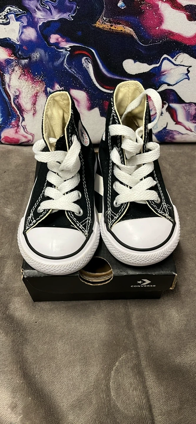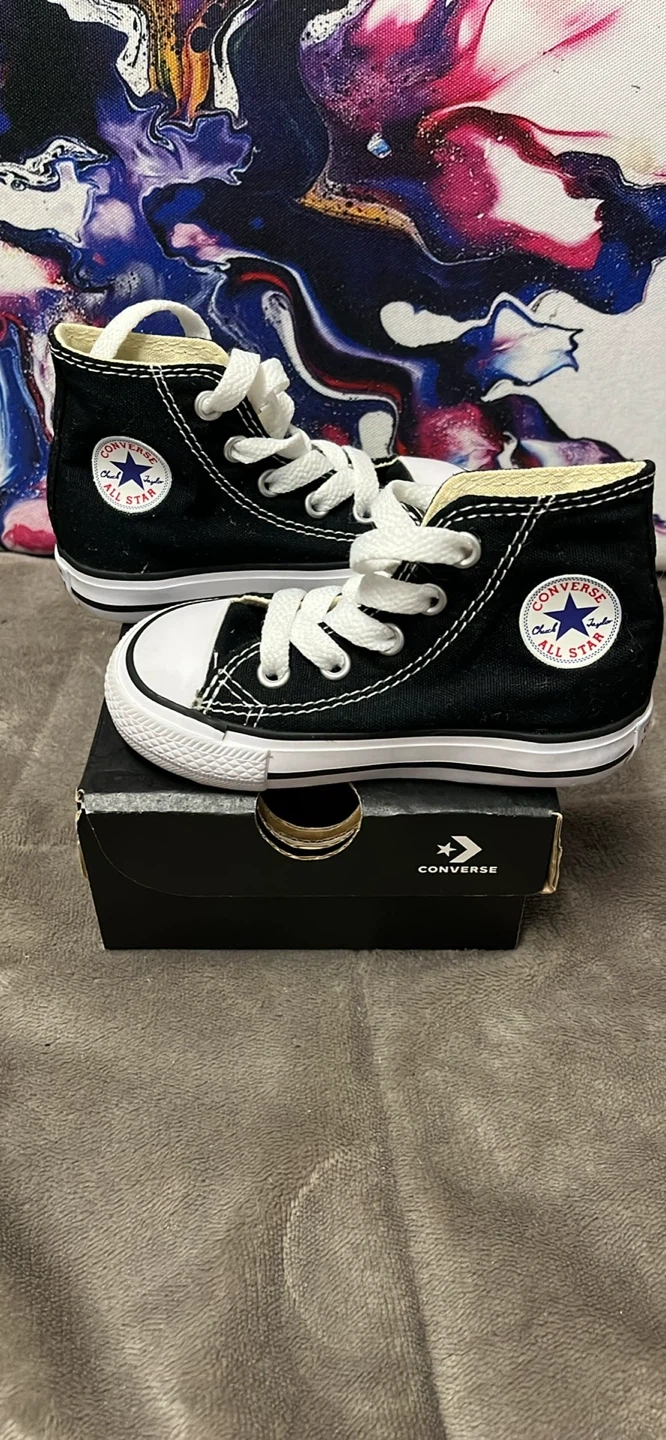 60Selling a pair of Converse Chuck Taylor All Star high tops in black! They are in great condition and size 5. Comes with the original box.