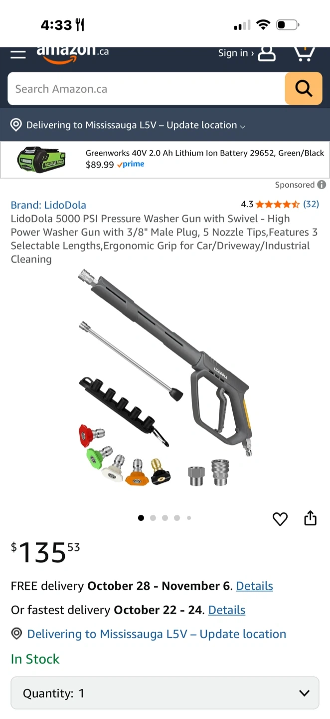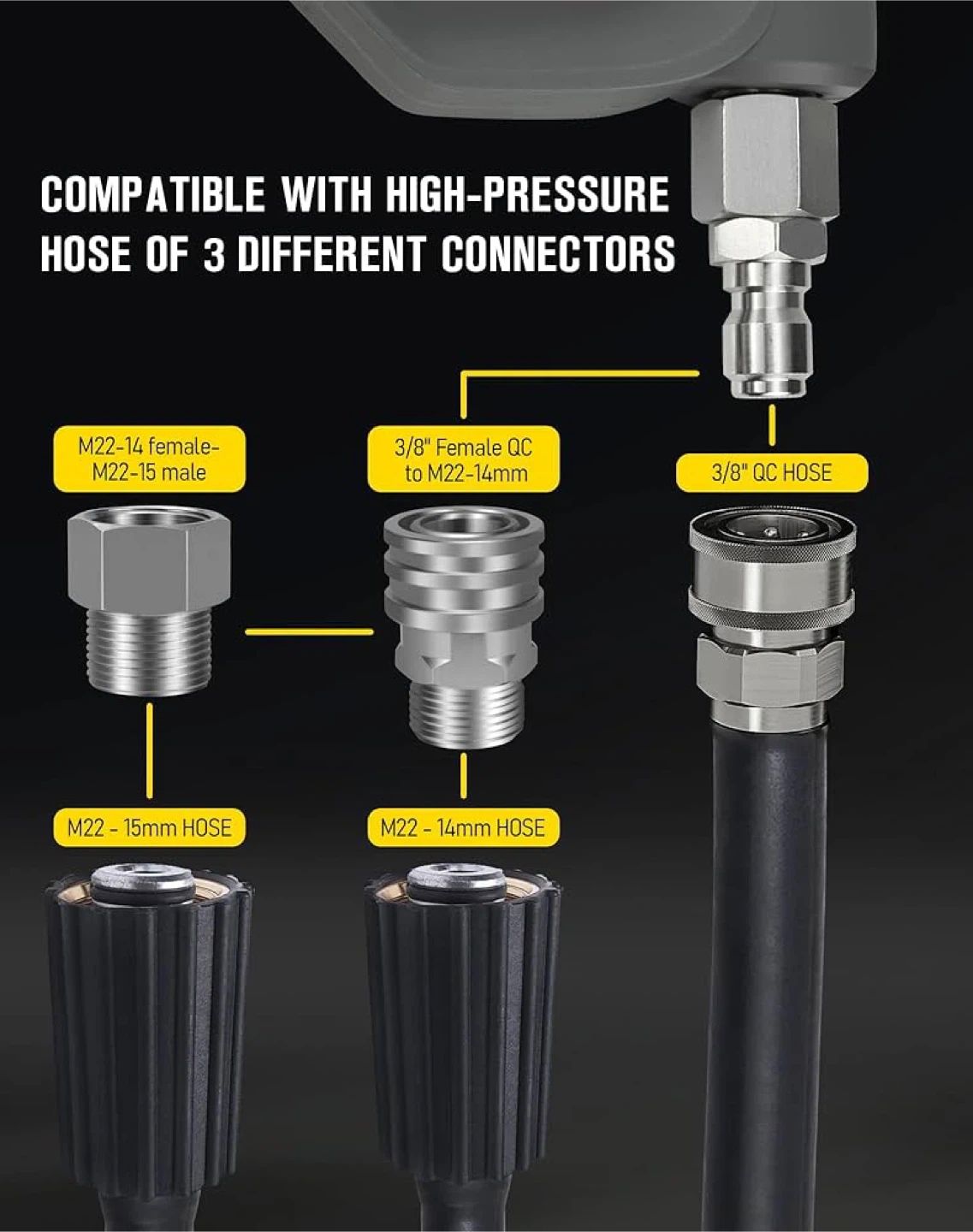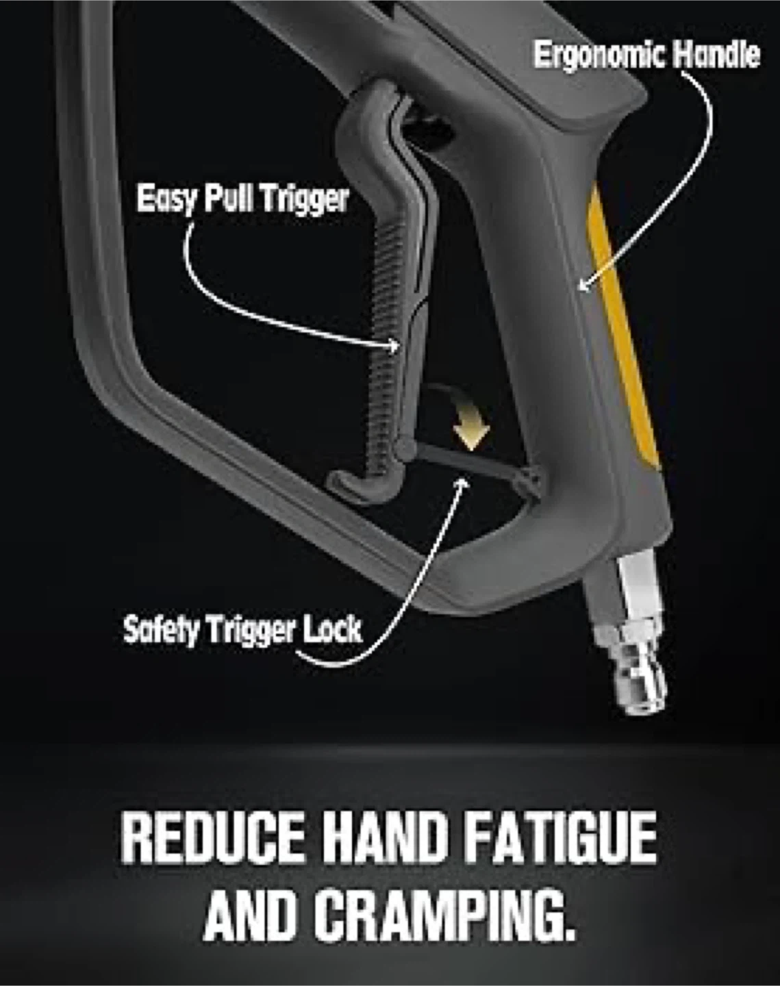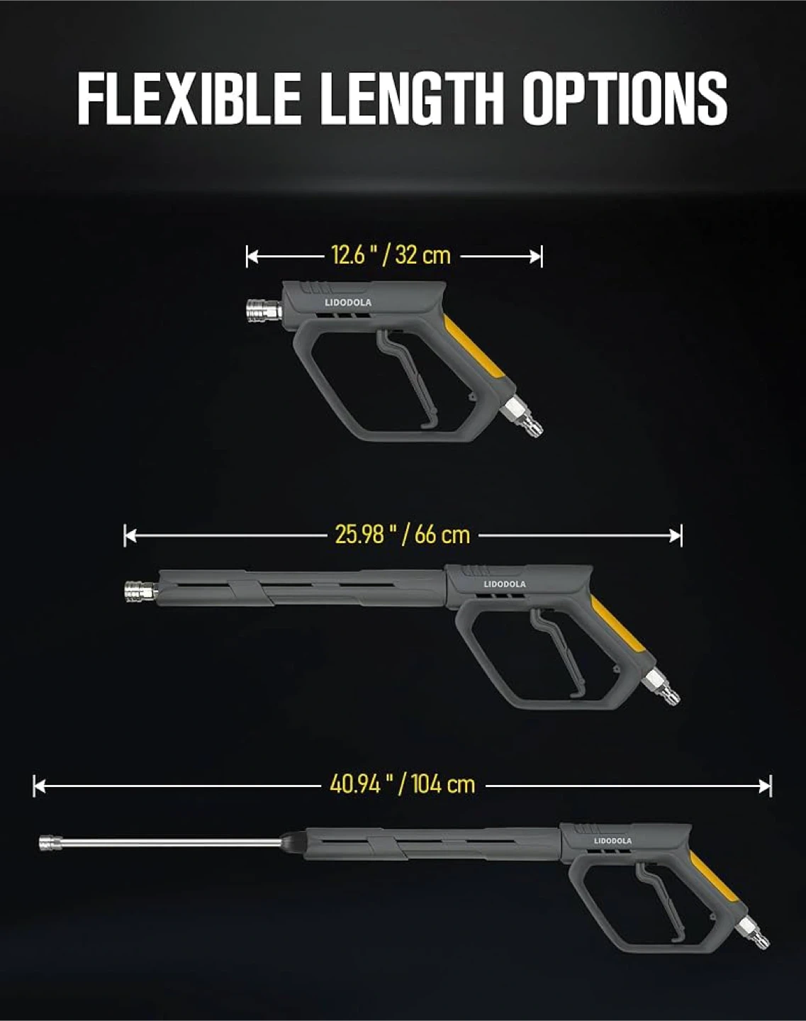 38Selling a LidoDola 5000 PSI Pressure Washer Gun with Swivel! It's a high power washer gun with a 3/8" male plug. It also features 5 nozzle tips, 3 selectable lengths, and an ergonomic grip for car, driveway, and industrial cleaning. The original price was $135.53. It's compatible with high-pressure hoses of 3 different connectors.