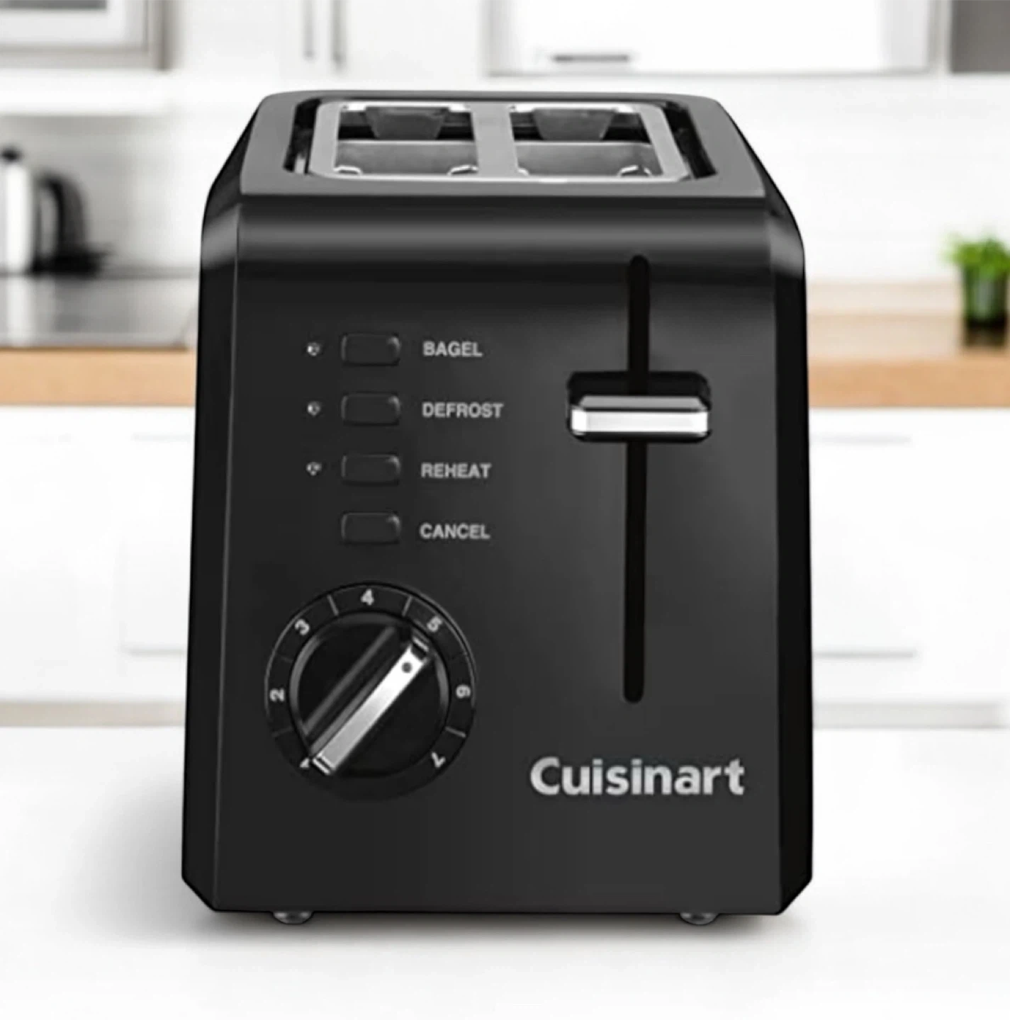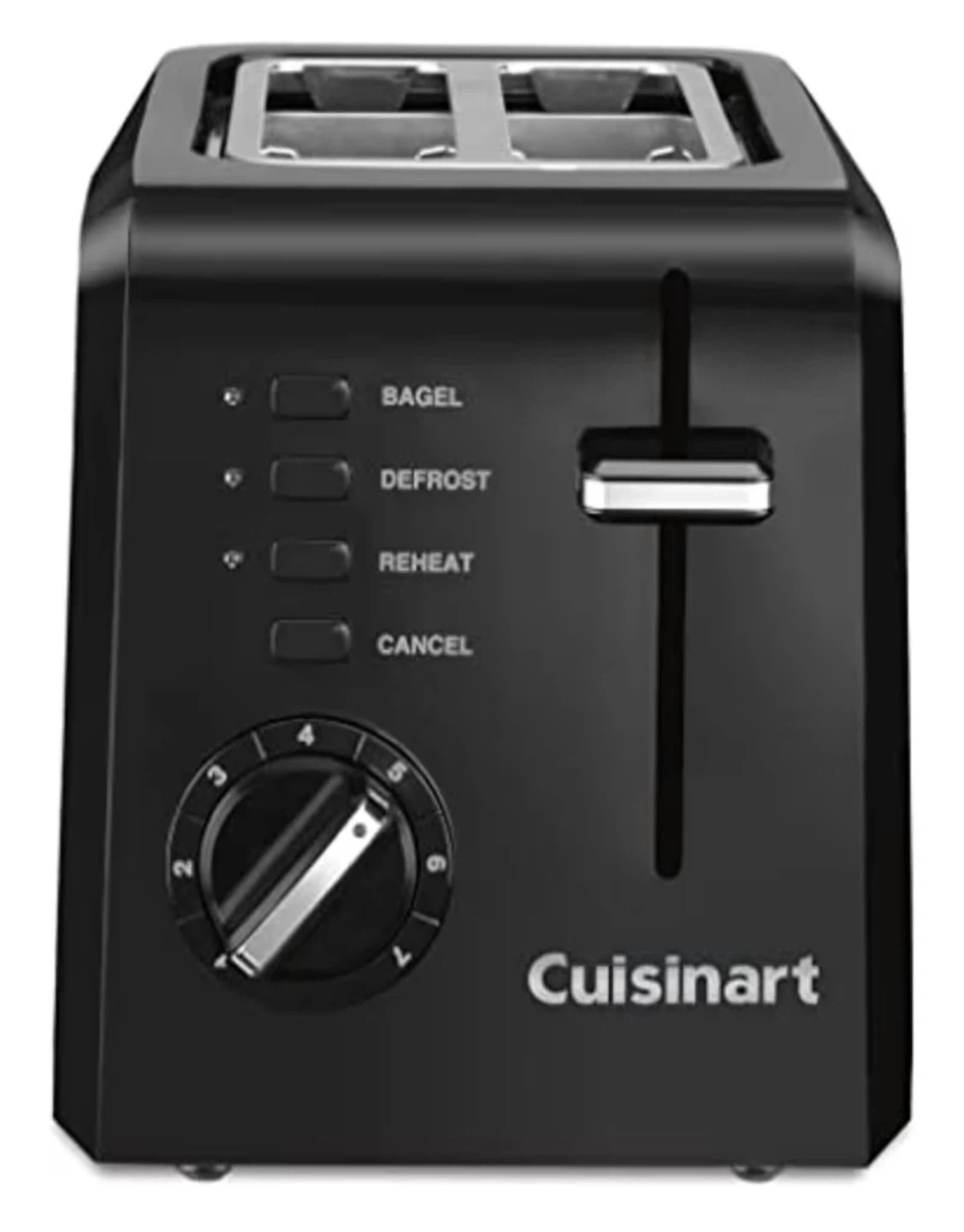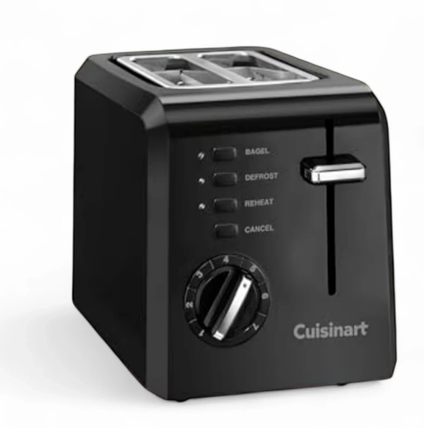 Selling a Cuisinart 2-slice toaster in black. It has settings for bagel, defrost, reheat, and cancel. Perfect for your toasting needs!