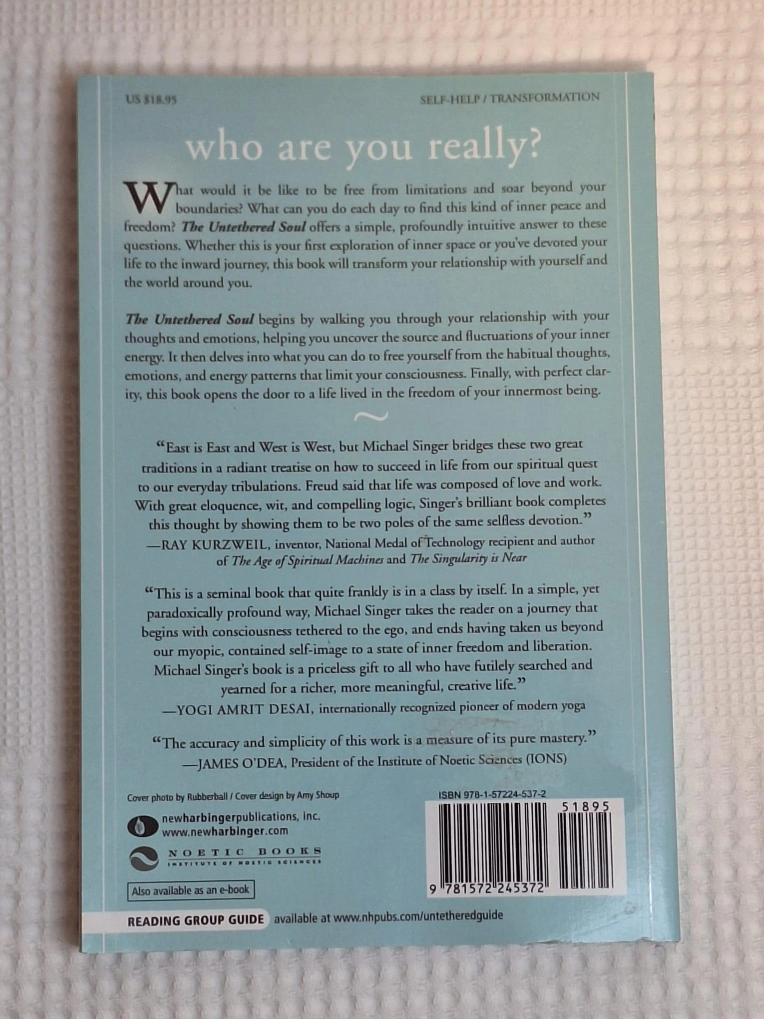 90The Untethered Soul: The Journey Beyond Yourself is a trade paperback book written by Michael A. Singer. Published in 2007 by New Harbinger Publications, the book delves into topics like mindfulness, meditation, personal growth, and spirituality. Illustrated with a total of 200 pages, this self-help and psychology book offers insights into unlocking the mind and body for a more meaningful and inspired life. With a focus on exploring the nature of the self and finding inner peace, this book is a valuable read for those seeking spiritual enlightenment