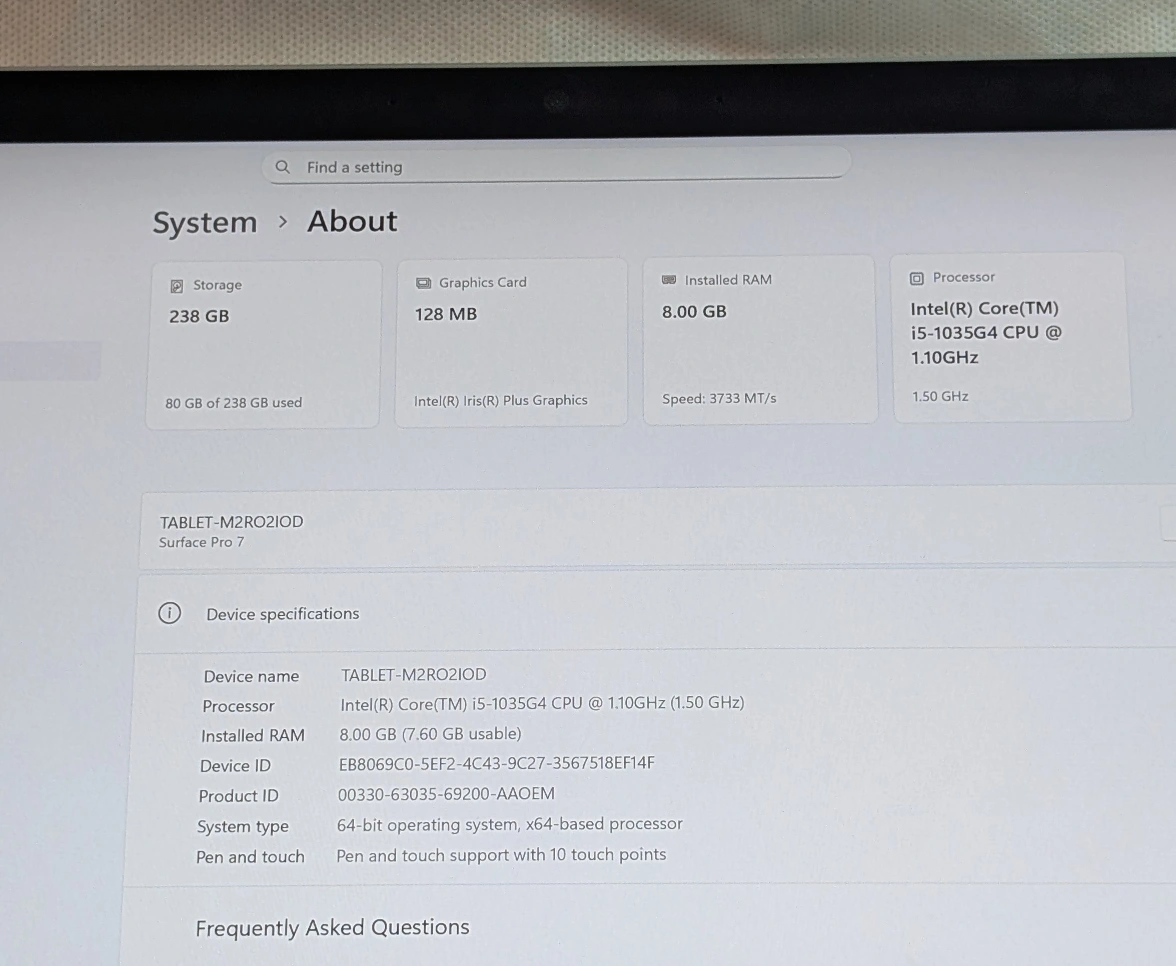 NEW CONDITION MICROSOFT SURFACE PRO 7 TABLET i5 8GB RAM