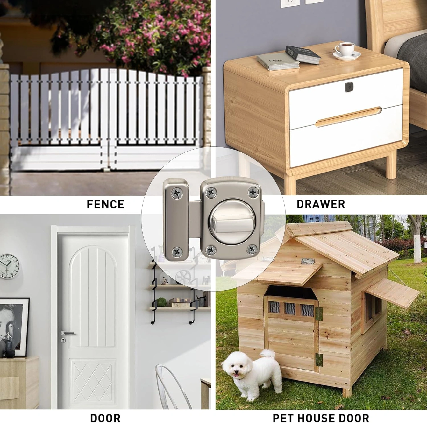 76Alise Gate Latch Slide Bolt Latches Lock,Medium Size Safety Double Sided Rotate Gate Hardware,Brushed Finish,63mmx55mm