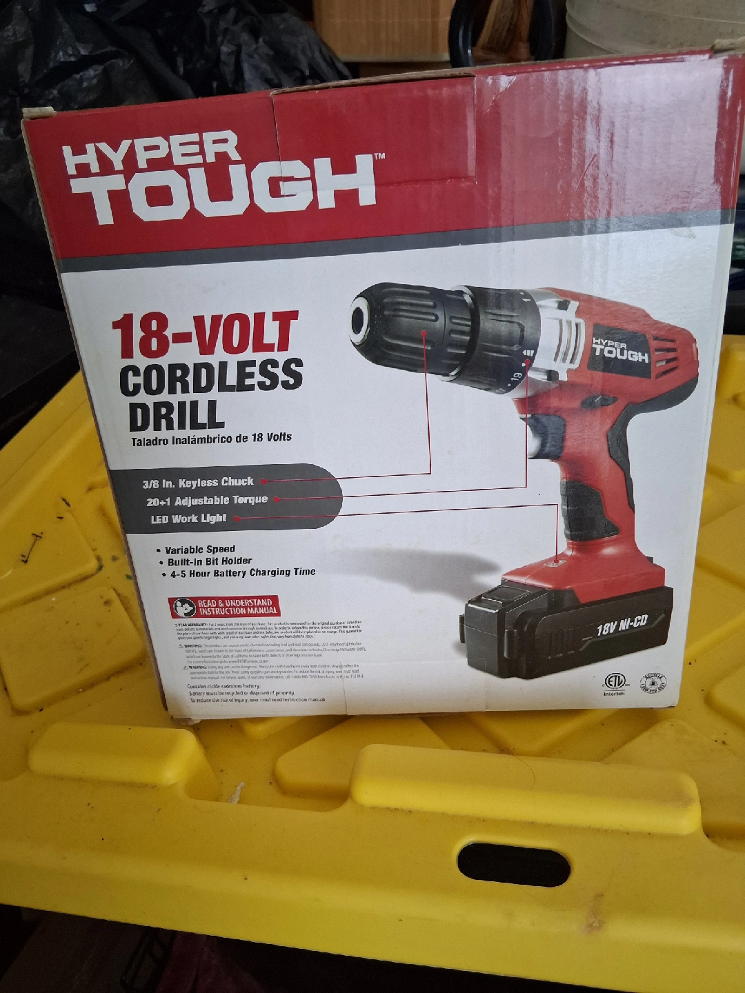 10Selling a Hyper Tough 18-Volt Cordless Drill. It features: - 3/8 in Keyless Chuck - 20+1 Adjustable Torque Settings - LED Work Light - Variable Speed - Built-in Bit Holder - 3-5 Hour Battery Charging Time