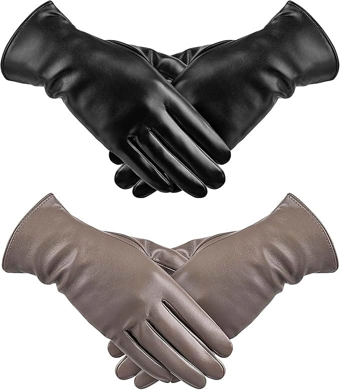10Black and Taupe Brown color. Premium PU Leather Gloves – Made from high-quality faux leather for a soft, durable, and luxurious feel. Elegant & Timeless Design – Sleek, classic style pairs effortlessly with casual or formal outfits. Full Touchscreen Function – Use any finger on smartphones and tablets without removing your gloves. Warm & Cozy Lining – Soft interior keeps hands warm and comfortable in cold weather. 2-Pair Value Pack – Stylish, functional, and perfect as a winter gift for women.