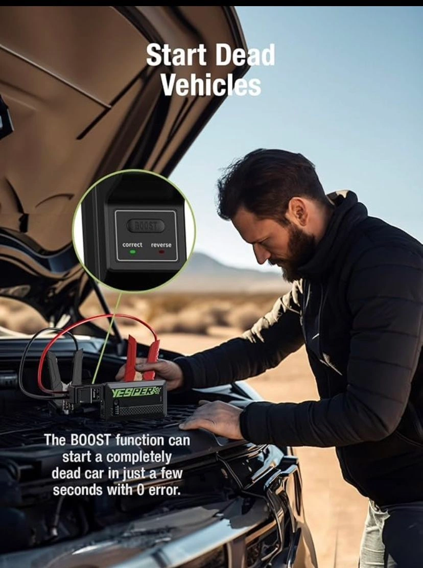 10Smallest and Lightest Jump Box: Designed for ultimate portability. This mini jump starter is 33% thinner, 27% smaller, and 34% lighter than similar models—perfectly pocket-sized for on-the-go use. 1500A Peak Current: A cost-effective choice with serious power—this compact jump starter delivers 1500 amps, capable of jump-starting cars, trucks, motorcycles, ATVs, boats, RVs, vans, SUVs, and even tractors with ease. Built with DSLI IV Safe Technology, this device includes essential features like spark-proof and reverse polarity protection to ensure safe and reliable operation every time. Built-In USB Power Pack: Features a fast-charging 5V/2.1A USB output, perfect for charging your smartphone, tablet, laptop, or other USB-powered devices when you’re on the road. Even if your vehicle battery is completely dead, the BOOST button allows you to force-start your engine in seconds—no waiting, no worries.