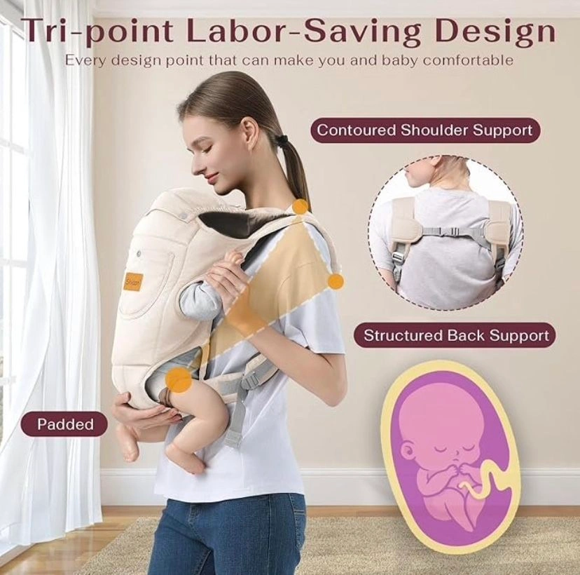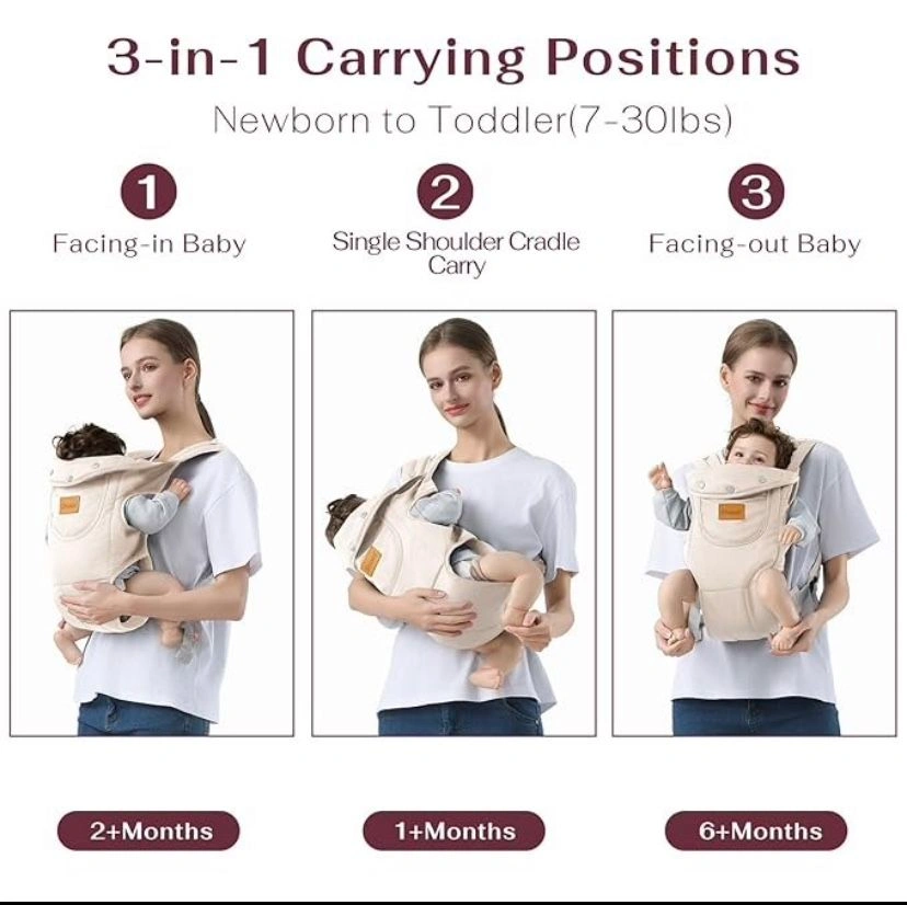 10Fits 7-30 lbs: Grows with your baby, evenly distributing weight to reduce pressure and discomfort for both parent and baby. Quick & Easy: Put your baby in the carrier within 1 minute, minimizing fuss and crying. All-Season Comfort: Made from premium cotton, lightweight, and breathable for year-round use. Ergonomic Design: "M" position supports healthy hip development and spine alignment for infants 0-1 year old. Adjustable Fit: Customizable size to accommodate postpartum body changes and ensure comfort for the whole family.