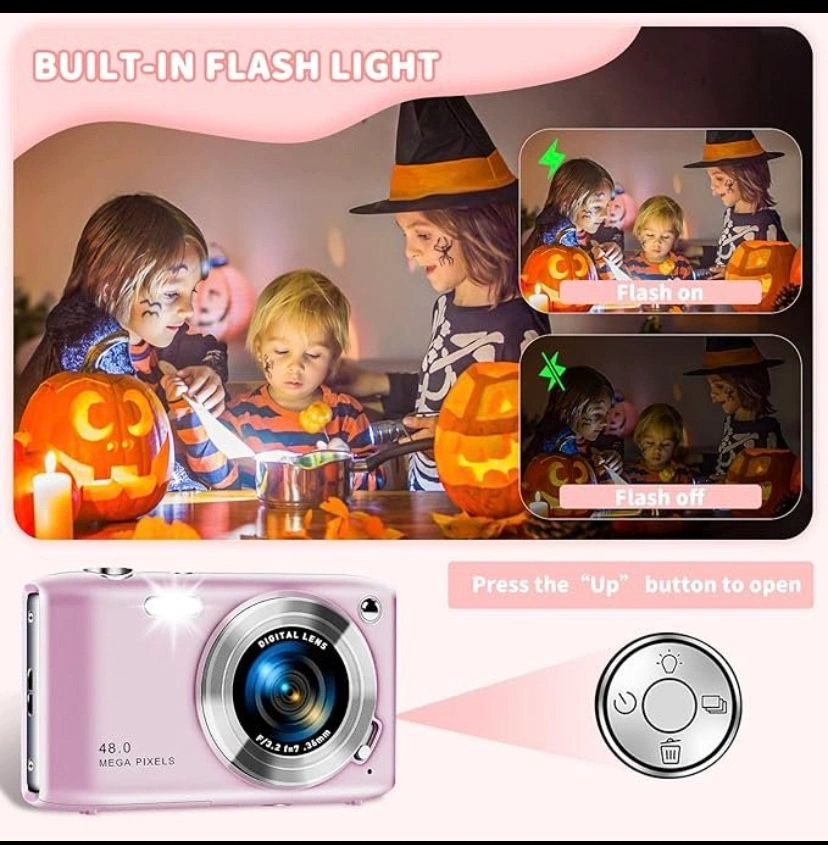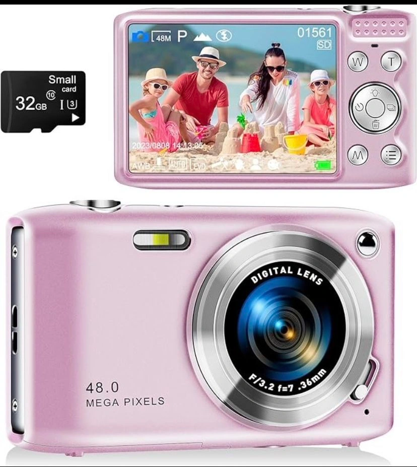 As is, new! HD Digital Camera 48MP High-Resolution Capture: 48MP photos and 4K videos with advanced CMOS sensor; features macro mode and 2.88-inch IPS screen for clear close-up shots. Creative Features: Includes video pause, built-in microphone and speaker, flash, ISO, White Balance, anti-shake, 3 burst modes, beauty mode, 20 filters, face detection, smile capture, and selfie mode. 16X Digital Zoom & Webcam Function: 16x zoom for distant views; can be used as a webcam for video calls and live streaming. Compact & User-Friendly: Weighs under 0.5 lb, dimensions 3.9 x 0.8 x 2.1 inches; suitable for teens and kids with simple controls for easy photo-taking. Great Gift & Support: Ideal for capturing life’s moments; stylish, budget-friendly, and easy for beginners.