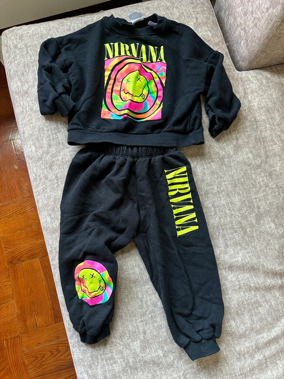 Buy & SellZara Kids Nirvana Sweatshirt & Pants Set 4-5YZara Kids Nirvana Sweatshirt & Pants Set 4-5Y$14Zara Kids Nirvana black sweatshirt and pants set in size 4-5 years (110 cm).ConditionGoodAge3-5 years0 chats·0 favorites·27 viewsSELLERSandra TKingsbridge100 reviewsWHERE TO MEETCheck Location
