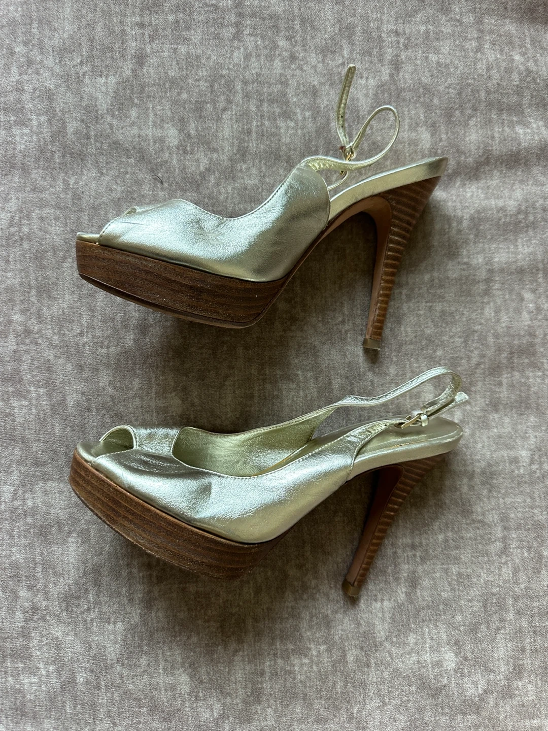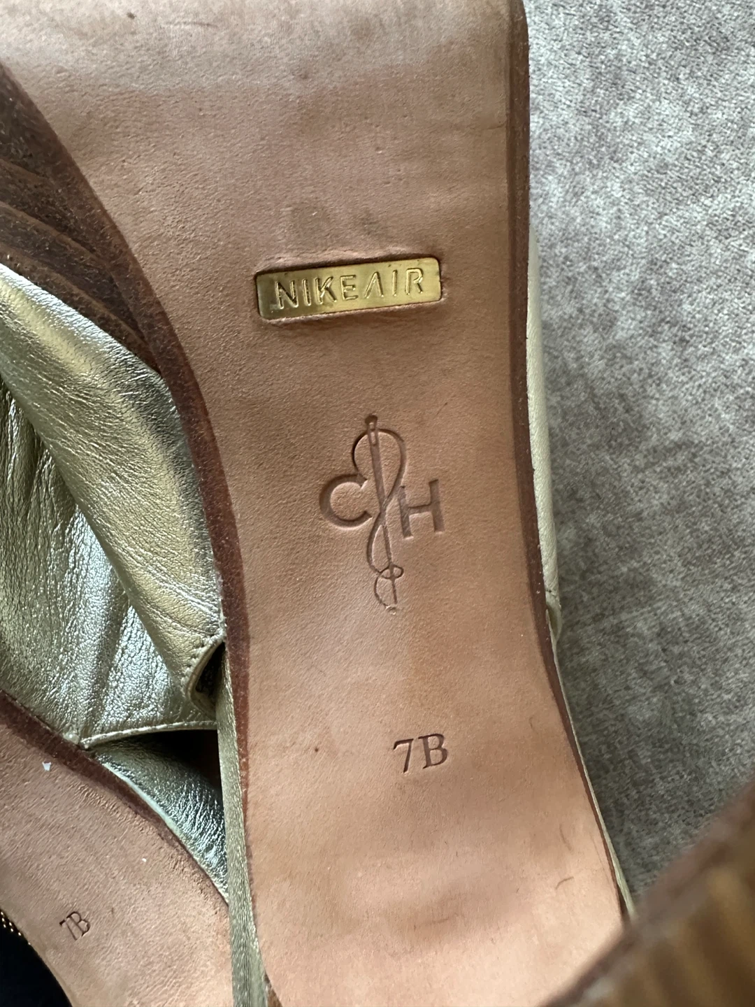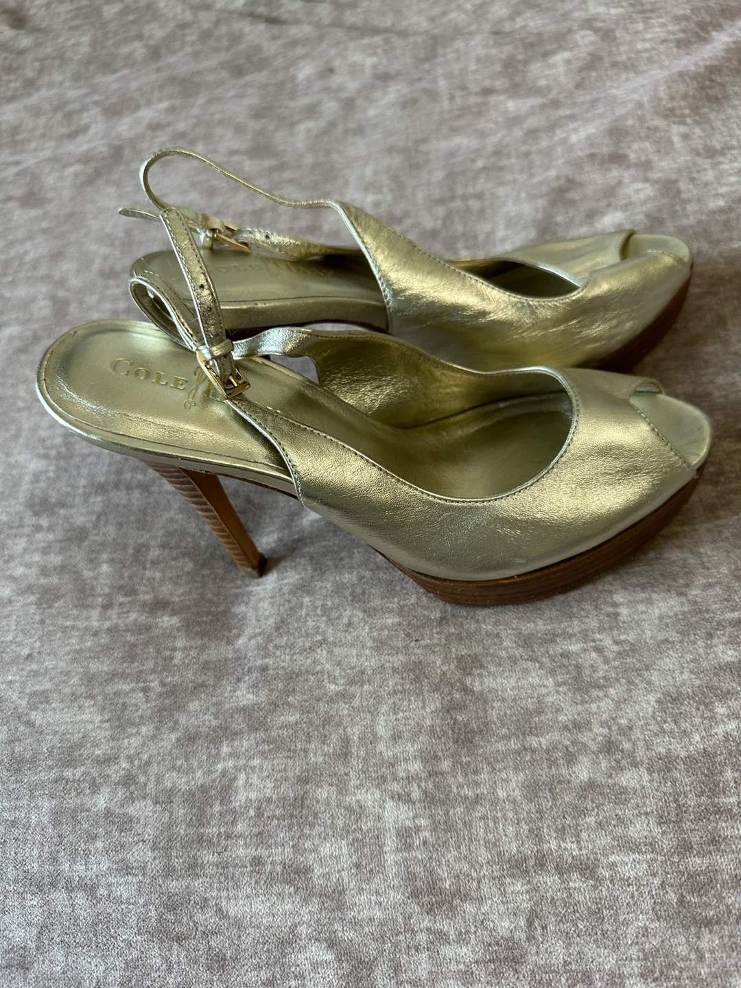 Selling a pair of Cole Haan heels in gold! They are a size 7B. These heels feature Nike Air technology for added comfort and support. They are in good condition and ready for a new home