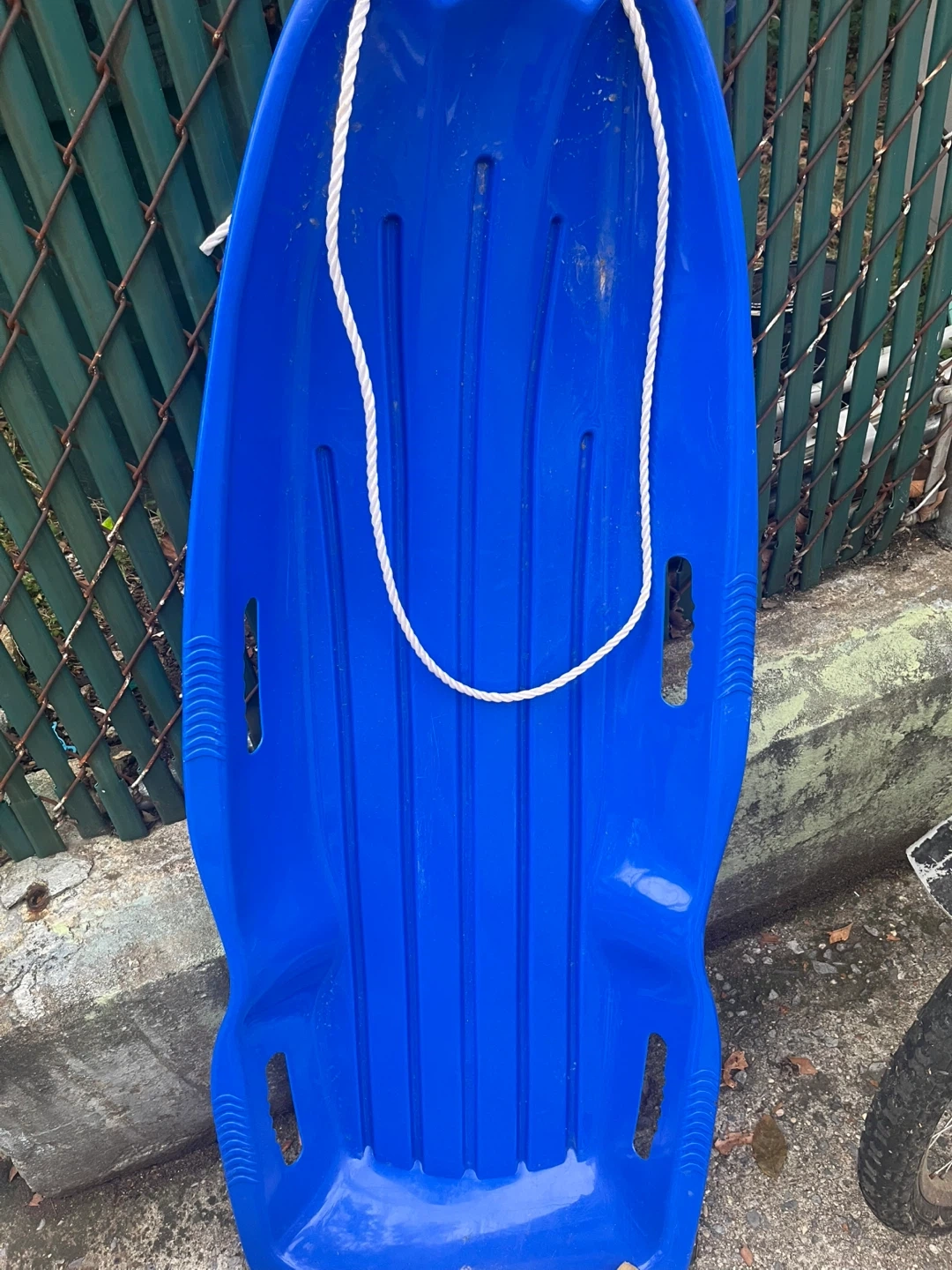 63Selling a blue plastic sled! It has a rope attached for easy pulling. Perfect for some winter fun!