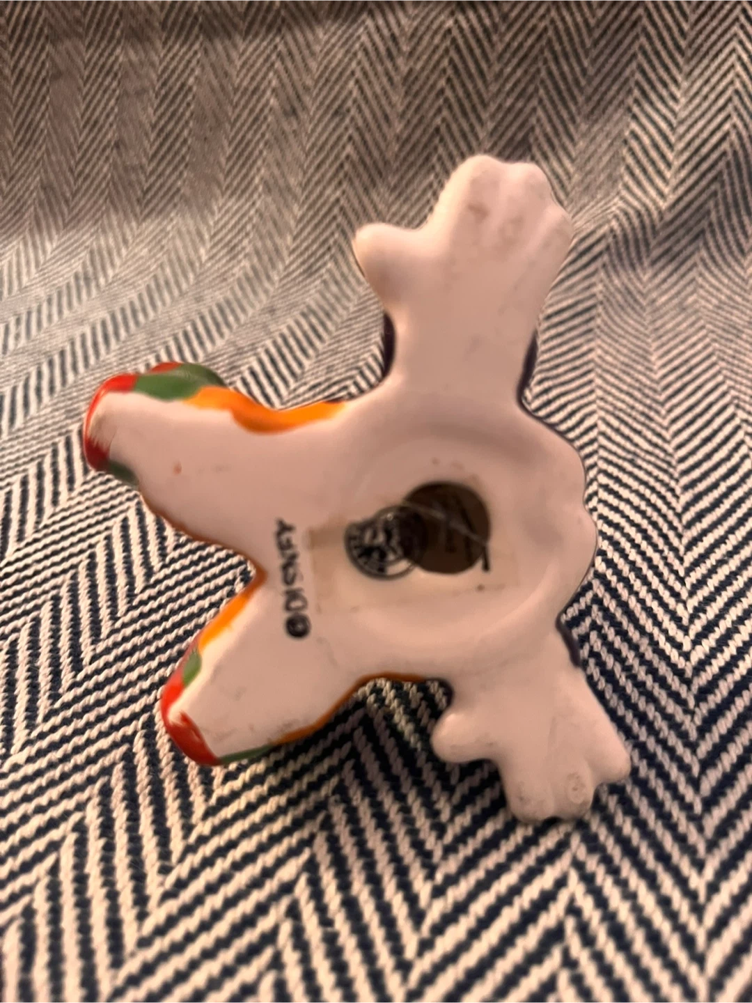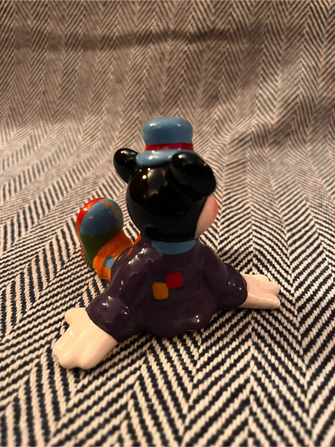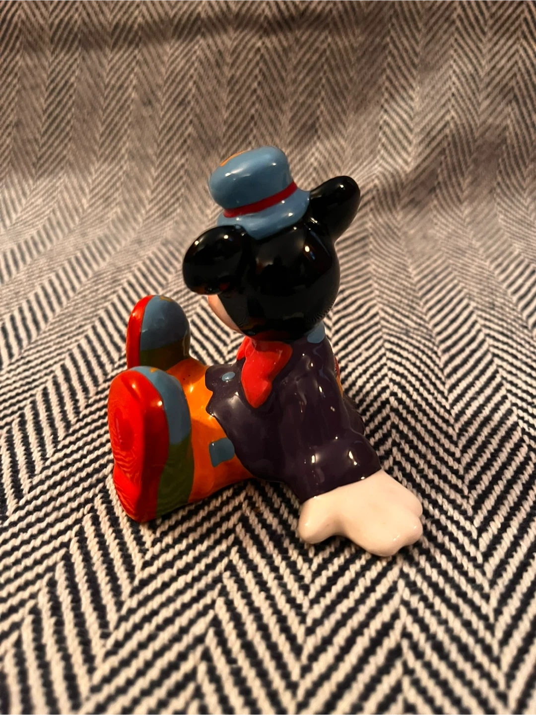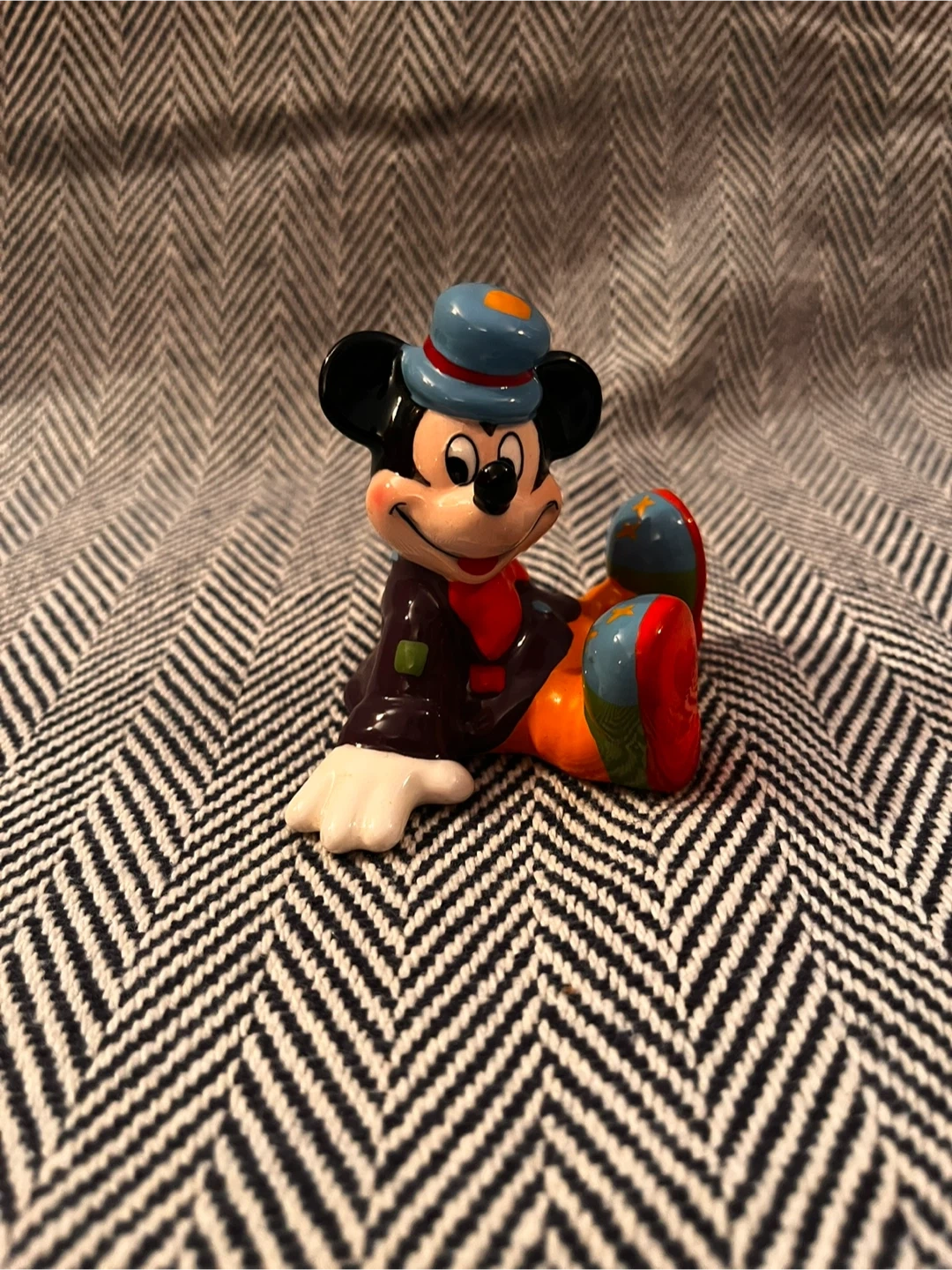 Selling a cute Disney figurine. It features Mickey Mouse in a colorful outfit and a blue hat. It's in great condition and would be a fun addition to any Disney collection!