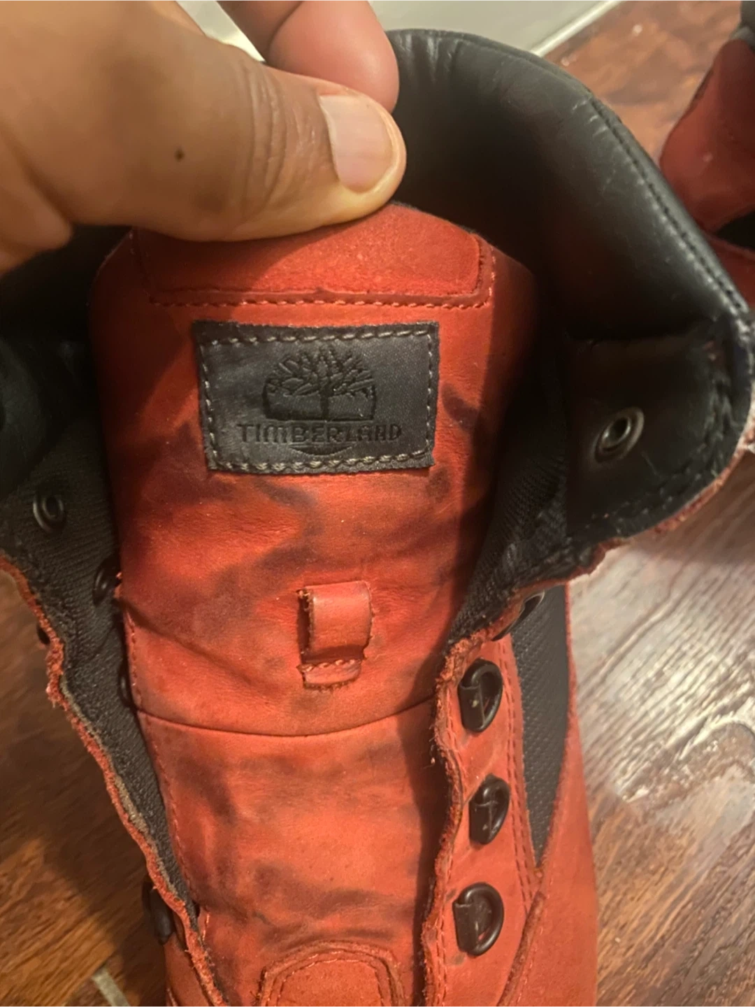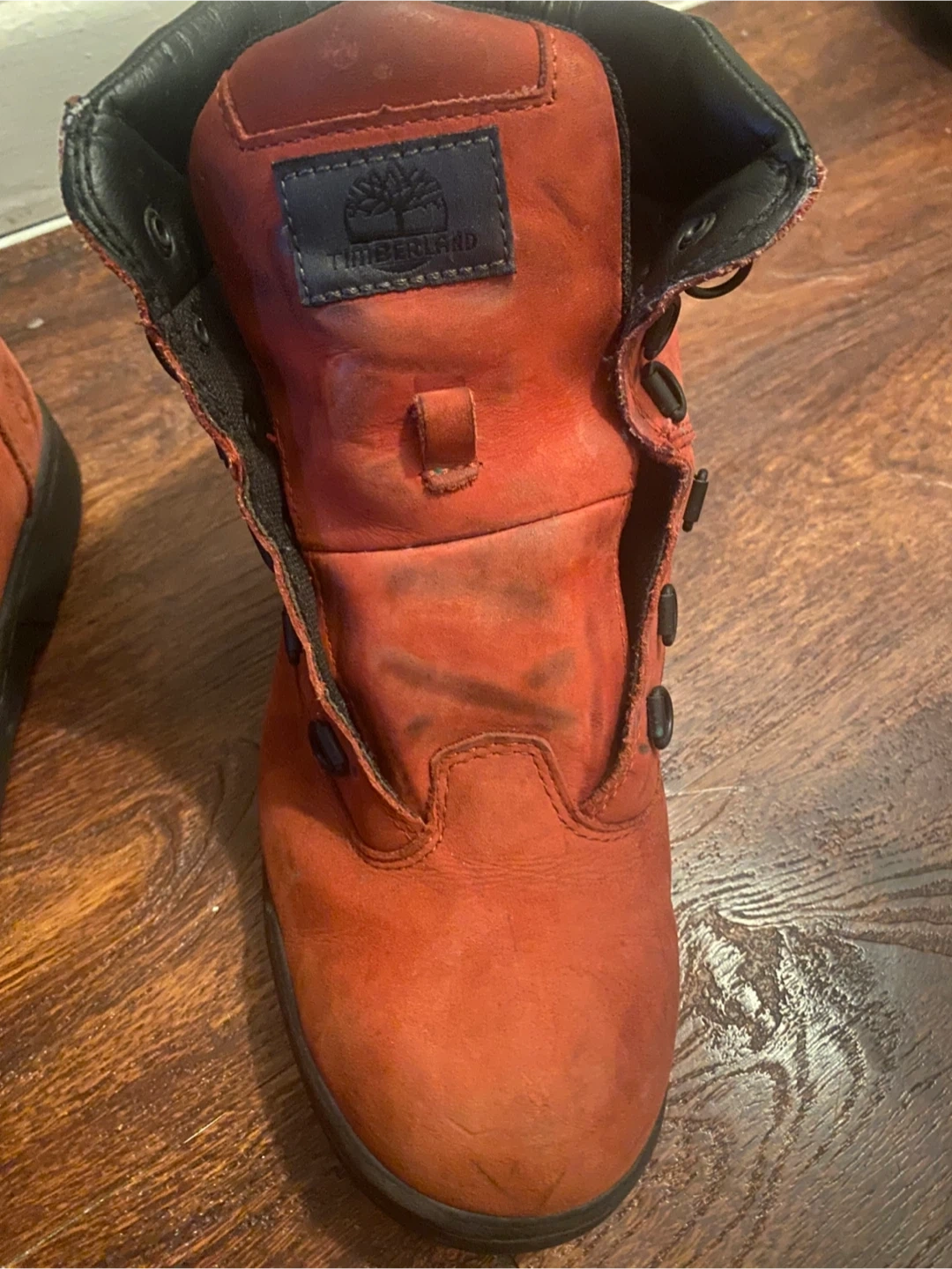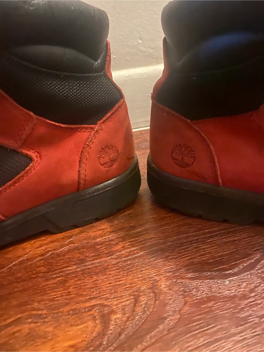 87Selling a pair of Timberland boots in red. They have some signs of wear, as you can see in the photos. No Laces