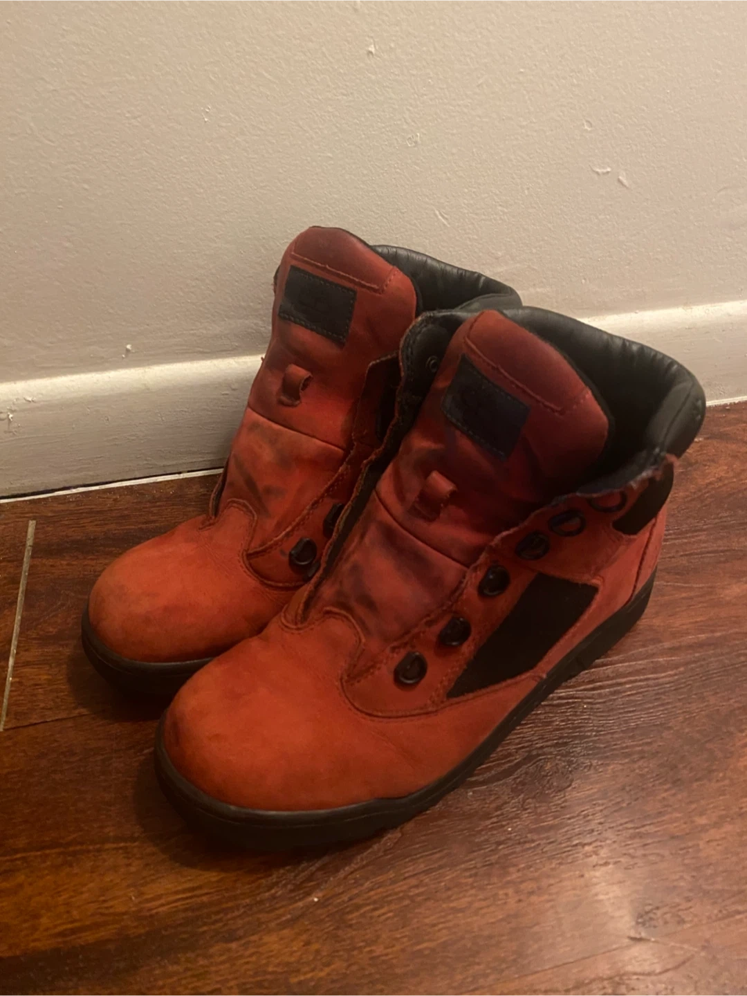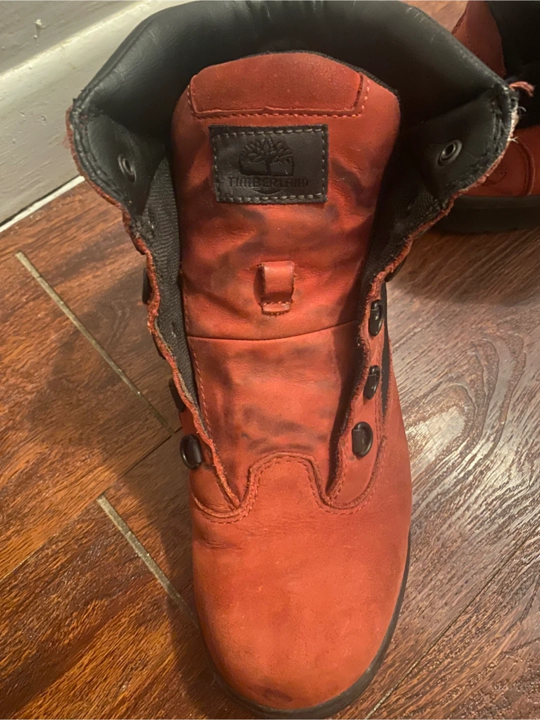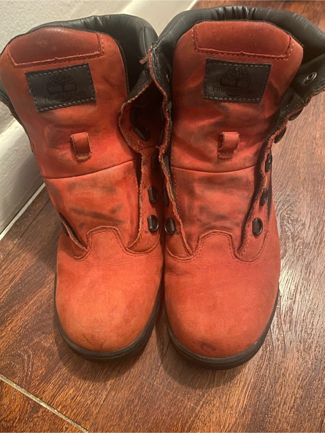 87Selling a pair of Timberland boots in red. They have some signs of wear, as you can see in the photos. No Laces