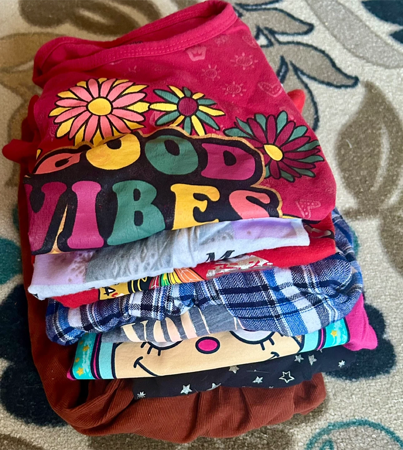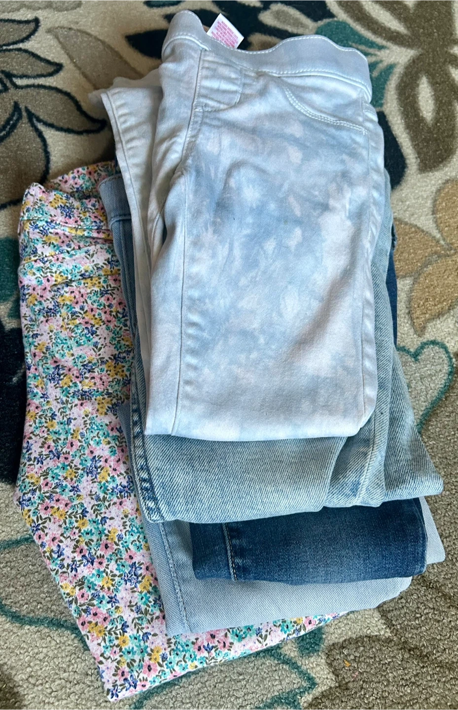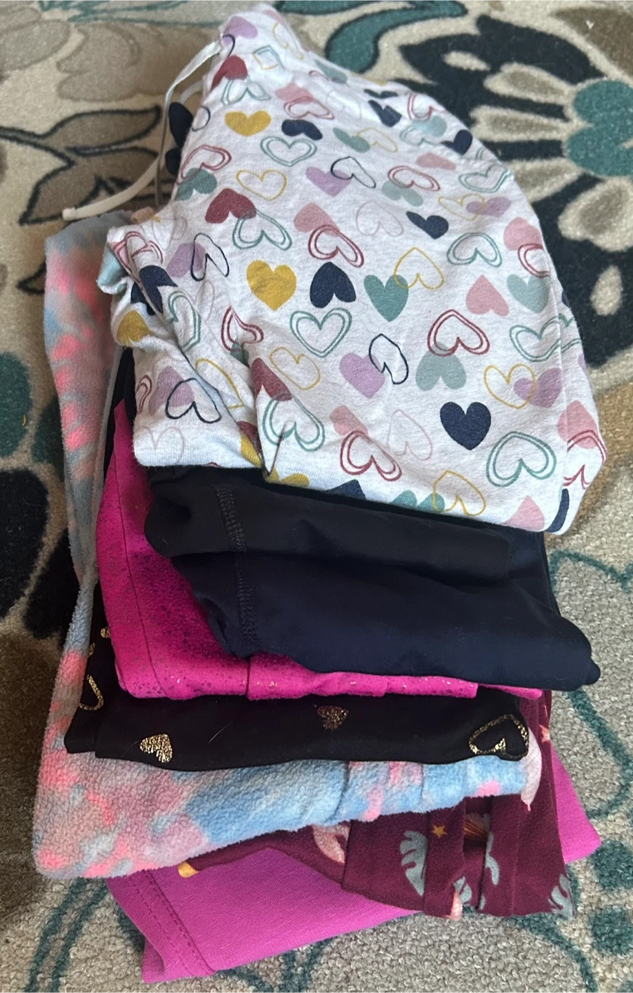 110Selling a used bundle of girls' clothes . There are 9 long sleeve tops sizes7,7-8 M, and 13 bottoms that includes jeans and leggings. A great mix of patterns and colors.
